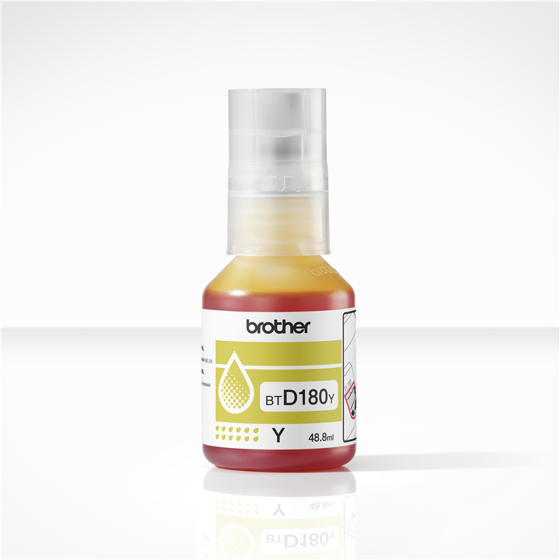 Brother BTD180Y yellow ink cartridge (BTD180Y) Brother BTD180Y Yellow Genuine Ink Bottle, Original, Yellow, Brother, DCP-T580DW, DCP-T583DW, DCP-T780DW, 5000 pages, 1 pc(s) ~5,000 pages kr71.29VAT incl., plus shipping costs directly from stock Delivery time 1-2 days add to basket BTD180BK black ~7,500 pages2.3 p / page kr174.37 BTD180C cyan ~5,000 pages1.4 p / page kr71.29 BTD180M magenta ~5,000 pages1.4 p / page kr71.29 BTD180Y yellow ~5,000 pages1.4 p / page kr71.29 Product information "Brother BTD180Y yellow ink cartridge"ink cartridge yellow ~5,000 pages Brother BTD180Y Yellow Genuine Ink Bottle, Original, Yellow, Brother, DCP-T580DW, DCP-T583DW, DCP-T780DW, 5000 pages, 1 pc(s) Read moreread lessSuitable for the following printersBrother DCP-TDCP-T580DWDCP-T583DWDCP-T780DWtechnical dataPackaging contentQuantity per pack1 pc(s)FeaturesPrinting colours YellowColour ink page yield5000 pagesCompatibilityDCP-T580DW, DCP-T583DW, DCP-T780DWBrand compatibilityBrotherTypeOriginalWeight & dimensionsWeight166 gDimensions (WxDxH)40 x 100 x 45 mmPackaging dataPackage weight250 gPackage depth123 mmPackage height55.5 mmPackage width56 mmAll details without engagement. Data source: IceCatManufacturer information on product safety (GPSR)Brother International (Nederland) B.V.Zanderij 251185 ZM Amstelveen E-mail: brother@brother.de Suitable accessories for your printer Original Brother BTD-180 multipack cyan / magenta / yellow (BTD180CLVAL)colourTape Width Size colour: Page number:~15,000 pagesPage price:1.3 p / pagekr213.87-10%kr191.96VAT incl., free shipping directly from stock add to basket Original Brother multipack for your printer. Brother BTD-180 multipack cyan / magenta / yellow (BTD180CLVAL)colourTape Width Size:Standard colour: Page number:~15,000 pagesPage price:1.3 p / pagekr213.87-10%kr191.96VAT incl., free shipping directly from stock add to basket Your product is right in your shopping cart! Select your printer to make sure the selected product fits for you.Loading...