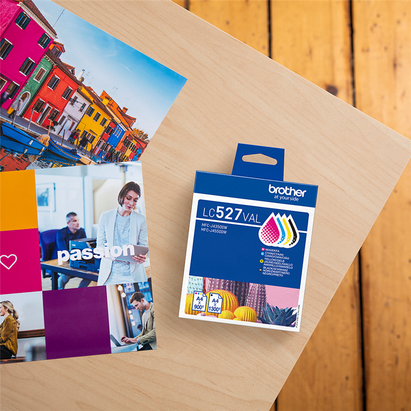 Brother LC527VAL multipack black / cyan / magenta / yellow (LC527VAL) (LC527VAL) Brother Genuine LC527VAL Ink Cartridge Value Pack, Black, Cyan, Magenta, Yellow, Pigment-based ink, Pigment-based ink, 4 pc(s), 1300 pages, Value pack ~4,000 pages kr1,165.09-17%kr961.28VAT incl., free shipping directly from stock Delivery time 1-2 days add to basket Content LC527BK black ~1.300 pages 27.1 p / page LC527C cyan ~900 pages 22.6 p / page LC527M magenta ~900 pages 22.6 p / page LC527Y yellow ~900 pages 22.6 p / page Product information "Brother LC527VAL multipack black / cyan / magenta / yellow"multipack black / cyan / magenta / yellow ~4,000 pages Brother Genuine LC527VAL Ink Cartridge Value Pack, Black, Cyan, Magenta, Yellow, Pigment-based ink, Pigment-based ink, 4 pc(s), 1300 pages, Value pack Read moreread lessSuitable for the following printersBrother MFC-JMFC-J4350DWMFC-J4550DWtechnical dataPackaging dataPackage weight230 gPackage depth131 mmPackaging contentQuantity per pack4 pc(s)Packaging dataPackage height109.5 mmPackage width75 mmWeight & dimensionsPackage typeHanging boxFeaturesTypeOriginalCompatibilityMFC-J4350DW, MFC-J4550DWPrinting colours Black, Cyan, Magenta, YellowBrand compatibilityBrotherBlack ink page yield1300 pagesquantity of black inks1Colour ink page yield900 pagesquantity of coloured inks 3Supply typeOther featuresProduct colour MulticolourAll details without engagement. Data source: IceCatManufacturer information on product safety (GPSR)Brother International (Nederland) B.V.Zanderij 251185 ZM Amstelveen E-mail: brother@brother.de Suitable accessories for your printer Original Brother LC527BK black ink cartridgecolourTape Width Size colour: Page number:~1,300 pagesPage price:32.8 p / pagekr426.25VAT incl., free shipping directly from stock add to basket directly from stock add to basket directly from stock add to basket directly from stock add to basket directly from stock add to basket directly from stock add to basket directly from stock add to basket directly from stock add to basket directly from stock add to basket Price / performance winner compatible with Brother LC527BK black Prindo Classic black ink cartridgecolourTape Width Size colour: Page number:~1,300 pagesPage price:18.2 p / pagekr236.04VAT incl., free shipping directly from stock add to basket directly from stock add to basket Delivery date unknown add to basket Delivery date unknown add to basket directly from stock add to basket directly from stock add to basket directly from stock add to basket directly from stock add to basket directly from stock add to basket directly from stock add to basket Original Brother Ink cartridge for your printer. Brother LC527BK black ink cartridgecolourTape Width Size:Standard colour: Page number:~1,300 pagesPage price:32.8 p / pagekr426.25VAT incl., free shipping directly from stock add to basket Brother LC527XLBK black ink cartridgecolourTape Width Size:XL colour: Page number:~3,000 pagesPage price:21.0 p / pagekr631.47VAT incl., free shipping directly from stock add to basket Brother LC527C cyan ink cartridgecolourTape Width Size:Standard colour: Page number:~900 pagesPage price:27.4 p / pagekr246.28VAT incl., free shipping directly from stock add to basket Brother LC527XLC cyan ink cartridgecolourTape Width Size:XL colour: Page number:~2,000 pagesPage price:19.7 p / pagekr394.72VAT incl., free shipping directly from stock add to basket Brother LC527M magenta ink cartridgecolourTape Width Size:Standard colour: Page number:~900 pagesPage price:27.4 p / pagekr246.28VAT incl., free shipping directly from stock add to basket Brother LC527XLM magenta ink cartridgecolourTape Width Size:XL colour: Page number:~2,000 pagesPage price:19.7 p / pagekr394.72VAT incl., free shipping directly from stock add to basket Brother LC527Y yellow ink cartridgecolourTape Width Size:Standard colour: Page number:~900 pagesPage price:27.4 p / pagekr246.28VAT incl., free shipping directly from stock add to basket Brother LC527XLY yellow ink cartridgecolourTape Width Size:XL colour: Page number:~2,000 pagesPage price:19.7 p / pagekr394.72VAT incl., free shipping directly from stock add to basket Brother LC527XLVAL multipack black / cyan / magenta / yellow (LC527XLVAL)colourTape Width Size:XL colour: Page number:~9,000 pagesPage price:18.2 p / pagekr1,815.63-10%kr1,641.84VAT incl., free shipping directly from stock add to basket Our price / performance winners Compatible Prindo Classic Ink cartridge for your printer.✅ Level indicator ✅ More printing performance ✅ 5-year warranty ✅ No loss of warranty for your printer compatible with Brother LC527BK black Prindo Classic black ink cartridgecolourTape Width Size:Standard colour: Page number:~1,300 pagesPage price:18.2 p / pagekr236.04VAT incl., free shipping directly from stock add to basket compatible with Brother LC527XLBK black Prindo Classic XL black ink cartridgecolourTape Width Size:XL colour: Page number:~3,000 pagesPage price:12.9 p / pagekr386.81VAT incl., free shipping directly from stock add to basket compatible with Brother LC527C cyan Prindo Classic cyan ink cartridgecolourTape Width Size:Standard colour: Page number:~900 pagesPage price:16.8 p / pagekr150.77VAT incl., free shipping directly from stock add to basket compatible with Brother LC527XLC cyan Prindo Classic XL cyan ink cartridgecolourTape Width Size:XL colour: Page number:~2,000 pagesPage price:12.1 p / pagekr241.74VAT incl., free shipping directly from stock add to basket compatible with Brother LC527M magenta Prindo Classic magenta ink cartridgecolourTape Width Size:Standard colour: Page number:~900 pagesPage price:16.8 p / pagekr150.77VAT incl., free shipping directly from stock add to basket compatible with Brother LC527XLM magenta Prindo Classic XL magenta ink cartridgecolourTape Width Size:XL colour: Page number:~2,000 pagesPage price:12.8 p / pagekr256.64VAT incl., free shipping directly from stock add to basket compatible with Brother LC527Y yellow Prindo Clas
