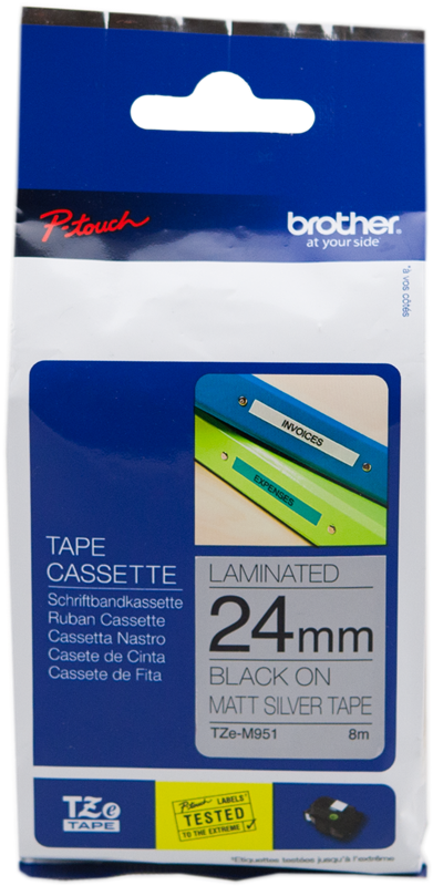 Brother TZe-M951 tape black on silver (TZe-M951) 24 mm x 8 m, laminated kr234.18VAT incl., free shipping directly from stock Delivery time 1-2 days Tape Width: 12 mm 24 mm 36 mm Color: add to basket add to basket add to basket Product information "Brother TZe-M951 tape black on silver"tape black on silver 24 mm x 8 m, laminated Read moreread lessSuitable for the following printersBrother P-TouchP-touch 1400P-touch 1600P-touch 2400P-touch 2400EP-touch 2420PCP-touch 2430PCP-touch 2450P-touch 2460P-touch 2470P-touch 2480P-touch 2500PCP-touch 2700VPP-touch 2730VPP-touch 3600P-touch 550P-touch 7500VPP-touch 7600VPP-touch 9200DXP-touch 9200PCP-touch 9400P-touch 9500PCP-touch 9600P-touch 9700PCP-touch 9800PCNP-touch D600VPP-touch D610BTVPP-touch D800WP-touch E500VPP-touch E550WVPP-touch H500P-touch H500LIP-touch P700P-touch P750TDIP-touch P750WP-touch P900WP-touch P900WcP-touch P950NWP-touch RL-700SBrother P-Touch CubeP-touch Cube Plus SchwarzP-touch Cube Protechnical dataFeaturesBrand compatibilityBrotherLabel colourBlack on silverOther featuresTape size24 mmWeight & dimensionsTape length8 mAll details without engagement. Data source: IceCatManufacturer information on product safety (GPSR)Brother International (Nederland) B.V.Zanderij 251185 ZM Amstelveen E-mail: brother@brother.de Your product is right in your shopping cart! Select your printer to make sure the selected product fits for you.Loading...
