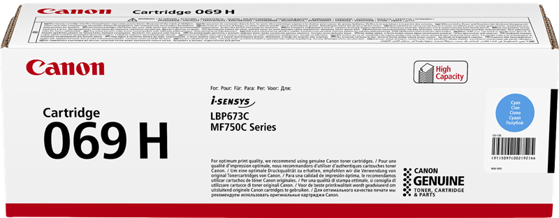 Canon 069 hc cyan toner (5097C002) (069 hc) toner cyan ~5,500 pages kr1,657.66VAT incl., free shipping directly from stock Delivery time 1-2 days add to basket 069 hbk black ~7,600 pages19.7 p / page kr1,499.79 069 hc cyan ~5,500 pages30.1 p / page kr1,657.66 069 hm magenta ~5,500 pages30.1 p / page kr1,657.66 069 hy yellow ~5,500 pages30.1 p / page kr1,657.66 Product information "Canon 069 hc cyan toner"toner cyan ~5,500 pages Read moreread lessSuitable for the following printersCanon i-SENSYS LBPi-SENSYS LBP673Cdwi-SENSYS LBP673Cdw IICanon i-SENSYS MFi-SENSYS MF752Cdwi-SENSYS MF752Cdw IIi-SENSYS MF754Cdwi-SENSYS MF754Cdw IItechnical dataTechnical detailsCompatibilityi-SENSYS LBP673Cdw i-SENSYS MF752Cdw i-SENSYS MF754CdwHarmonized System (HS) code84439990FeaturesPrinting colours CyanTypeOriginalColour toner page yield5500 pagesColour toner cartridges quantity1Quantity per pack1 pc(s)Supply typeSingle packBrand compatibilityCanonAll details without engagement. Data source: IceCatManufacturer information on product safety (GPSR)Canon Europa N.V.Bovenkerkerweg 591185 XB Amstelveen Website: www.canon-europe.com Suitable accessories for your printer Original Canon 069 bk black toner (5094C002)colourTape Width Size colour: Page number:~2,100 pagesPage price:39.1 p / pagekr820.98VAT incl., free shipping directly from stock add to basket directly from stock add to basket directly from stock add to basket directly from stock add to basket directly from stock add to basket Price / performance winner compatible with Canon 069 bk Prindo Classic black tonercolourTape Width Size colour: Page number:~2,100 pagesPage price:25.3 p / pagekr531.88VAT incl., free shipping directly from stock add to basket directly from stock add to basket directly from stock add to basket directly from stock add to basket directly from stock add to basket directly from stock add to basket directly from stock add to basket directly from stock add to basket directly from stock add to basket Original Canon toner for your printer. Canon 069 bk black toner (5094C002)colourTape Width Size:Standard colour: Page number:~2,100 pagesPage price:39.1 p / pagekr820.98VAT incl., free shipping directly from stock add to basket Canon 069 MCVP black / cyan / magenta / yellow / White value pack (+ Prindo Universal Papier 2500 Blatt)colourTape Width Size:Standard colour: Page number:~7,800 pagesPage price:49.4 p / pagekr3,854.41VAT incl., free shipping directly from stock add to basket Canon 069 c cyan toner (5093C002)colourTape Width Size:Standard colour: Page number:~1,900 pagesPage price:49.0 p / pagekr931.38VAT incl., free shipping directly from stock add to basket Canon 069 m magenta toner (5092C002)colourTape Width Size:Standard colour: Page number:~1,900 pagesPage price:49.0 p / pagekr931.38VAT incl., free shipping directly from stock add to basket Canon 069 y yellow toner (5091C002)colourTape Width Size:Standard colour: Page number:~1,900 pagesPage price:49.0 p / pagekr931.38VAT incl., free shipping directly from stock add to basket Our price / performance winners Compatible Prindo Classic toner for your printer.✅ Level indicator ✅ More printing performance ✅ 5-year warranty ✅ No loss of warranty for your printer compatible with Canon 069 bk Prindo Classic black tonercolourTape Width Size:Standard colour: Page number:~2,100 pagesPage price:25.3 p / pagekr531.88VAT incl., free shipping directly from stock add to basket compatible with Canon 069 hbk Prindo Classic XL black tonercolourTape Width Size:XL colour: Page number:~7,600 pagesPage price:12.1 p / pagekr918.70VAT incl., free shipping directly from stock add to basket Prindo Classic black / cyan / magenta / yellow / White value packcolourTape Width Size:Standard colour: Page number:~7,800 pagesPage price:29.5 p / pagekr2,604.39-12%kr2,297.62VAT incl., free shipping directly from stock add to basket compatible with Canon 069 c Prindo Classic cyan tonercolourTape Width Size:Standard colour: Page number:~1,900 pagesPage price:32.1 p / pagekr609.13VAT incl., free shipping directly from stock add to basket compatible with Canon 069 hc Prindo Classic XL cyan tonercolourTape Width Size:XL colour: Page number:~5,500 pagesPage price:18.5 p / pagekr1,015.37VAT incl., free shipping directly from stock add to basket compatible with Canon 069 m Prindo Classic magenta tonercolourTape Width Size:Standard colour: Page number:~1,900 pagesPage price:28.8 p / pagekr547.24VAT incl., free shipping directly from stock add to basket compatible with Canon 069 hm Prindo Classic XL magenta tonercolourTape Width Size:XL colour: Page number:~5,500 pagesPage price:18.5 p / pagekr1,015.37VAT incl., free shipping directly from stock add to basket compatible with Canon 069 y Prindo Classic yellow tonercolourTape Width Size:Standard colour: Page number:~1,900 pagesPage price:32.1 p / pagekr609.13VAT incl., free shipping directly from stock add to basket compatible with Canon 069 hy Prindo Classic XL yellow tonercolourTape Width Size:XL colour: Page number:~5,500 pagesPage price:18.5 p / pagekr1,015.37VAT incl., free shipping directly from stock add to basket Your product is right in your shopping cart! Select your printer to make sure the selected product fits for you.Loading...