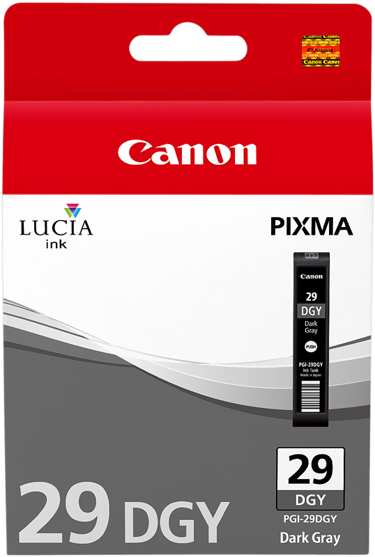 Canon PGI-29dgy Gray ink cartridge (4870B001) (PGI-29dgy) approx. 710 photos (format 10 x 15 cm) ~670 pages kr322.43VAT incl., free shipping Delivery date unknown add to basket PGI-29pbk black ~1,225 pages25.6 p / page kr313.93 PGI-29mbk black ~1,345 pages24.1 p / page kr324.06 PGI-29c cyan ~1,800 pages17.4 p / page kr313.81 PGI-29pc cyan ~1,375 pages24.1 p / page kr331.98 PGI-29m magenta ~1,755 pages17.9 p / page kr314.51 PGI-29pm magenta ~1,055 pages29.8 p / page kr314.51 PGI-29dgy Gray ~670 pages48.1 p / page kr322.43 PGI-29gy Gray ~790 pages41.9 p / page kr331.17 PGI-29co clear ~429 pages73.3 p / page kr314.51 Product information "Canon PGI-29dgy Gray ink cartridge 4870B001"The specially formulated LUCIA PGI-29DGY Dark Gray Ink produces professional quality photo prints and superior longevity, perfect for displaying your printed works of art. A dedicated Gray Ink Tank means you can print truly professional black ad white photos. Canon's proprietary FINE (Full Photolithographic Inkjet Nozzle Engineering) technology delivers exceptional sharpness and detail. For the best printing results, always use genuine Canon ink and photo paper. Plus, Canon's individual ink system can help increase efficiency by reducing waste and saving you money since you'll only be replacing the color that runs out. Read moreread lessSuitable for the following printersCanon PIXMA ProPIXMA Pro-1technical dataPackaging contentQuantity per pack1 pc(s)FeaturesPrint technologyInkjetPrinting colours Dark GreyQuantity1Compatible productsPIXMA PRO-1Page yield670 pagesCapacity36 mlInk typePigment-based inkOriginalYesMultipackNoCompatibilityPIXMA PRO-1Brand compatibilityCanonTypeOriginalPackaging dataPackage typeBoxAll details without engagement. Data source: IceCatManufacturer information on product safety (GPSR)Canon Europa N.V.Bovenkerkerweg 591185 XB Amstelveen Website: www.canon-europe.com Your product is right in your shopping cart! Select your printer to make sure the selected product fits for you.Loading...