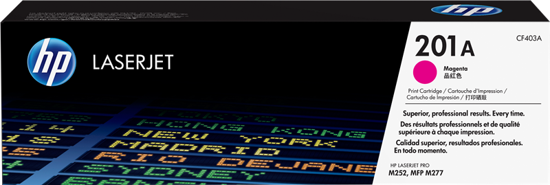 HP 201A magenta toner (CF403A) (CF403A) (54)4.9/5.0 standard capacity ~1,330 pages kr1,232.80VAT incl., free shipping directly from stock Delivery time 1-2 days add to basket HP 201A black ~1,420 pages73.6 p / page kr1,045.04 HP 201A cyan ~1,330 pages92.7 p / page kr1,232.80 HP 201A magenta ~1,330 pages92.7 p / page kr1,232.80 HP 201A yellow ~1,330 pages92.7 p / page kr1,232.80 Product information "HP 201A magenta toner"Make documents and marketing materials look professional when you print with Original HP LaserJet toner cartridges. Keep your home or office productive by avoiding wasted time and supplies. These cartridges are specifically designed for your printer.Features- Make a professional impact by printing stunning color documents and marketing materials. This toner's gloss delivers photo-quality images. Get business-quality results on a wide range of laser papers.- Help keep printing costs low while maintaining productivity. Original HP LaserJet toner cartridges deliver consistent printing. Because cartridges are designed for exceptional reliability, you can avoid wasted supplies and expensive delays.- Shop for supplies hassle-free with HP SureSupply.1 When it's time to install a new cartridge, you can trust that HP's cartridge design makes replacement quick and easy. Recycle your old toner cartridges through HP Planet Partners.2 Read moreread lessSuitable for the following printersHP Color LaserJetColor LaserJet Pro M252dwColor LaserJet Pro M252nColor LaserJet Pro MFP M274nColor LaserJet Pro MFP M277dwColor LaserJet Pro MFP M277ntechnical dataLogistics dataMaster (outer) cases per pallet (EU)24 pc(s)Master (outer) cases per pallet layer30 pc(s)Pallet weight (EU)182500 gPallet gross weight245500 gPallet height1254 mmPallet length986 mmPallet width1100 mmTechnical detailsCompatibilityHP LaserJet Pro M252, M274, M277Other featuresProduct_type_testToner cartridgePackaging dataPackage typeBoxPackage weight750 gPackage height111 mmPackage depth96 mmPackage width363 mmFeaturesMaster (outer) cases per pallet300 pc(s)Layers per pallet10 pc(s)Products per pallet (EU)216 pc(s)Printing colours MagentaPage yield1400 pagesPrint technologyLaserCompatible productsColor LaserJet Pro M252, M277 MFPTypeOriginalQuantity1HP segment Small medium businessCountry of originJapanOEM codeCF403APage yield (colour)1400 pagesMultipackNoColour toner page yield1330 pagescartridge capacityStandardQuantity per pack1 pc(s)Brand compatibilityHPOriginalYesProduct typeToner cartridgeWeight & dimensionsWeight530 gHeight111 mmDepth96 mmWidth363 mmProducts per pallet300 pc(s)Operational conditionsOperating temperature (T-T)15 - 30 °CStorage temperature (T-T)-20 - 40 °COperating relative humidity (H-H)10 - 80 %Storage relative humidity (H-H)10 - 95 %All details without engagement. Data source: IceCatManufacturer information on product safety (GPSR)HP Deutschland GmbHHerrenberger Straße 14071034 Böblingen E-mail: reg@hp.com Website: https://www.hp.com/de-de/home.html customer ratings9/20/2025, Marisa D. (purchased: HP 201A black toner (CF400A))Translated from German:... Original products, so very good print quality3/18/2024, Andreas O. (purchased: HP 201A yellow toner (CF402A))Translated from German:Hp accessories always fit11/4/2023, Brian G. (purchased: HP 201A cyan toner (CF401A))Translated from German:Top quality.Show more reviews. Suitable accessories for your printer Original HP 201X black toner (CF400X)colourTape Width Size colour: Page number:~2,800 pagesPage price:50.1 p / pagekr1,403.81VAT incl., free shipping directly from stock add to basket directly from stock add to basket directly from stock add to basket directly from stock add to basket directly from stock add to basket directly from stock add to basket Top seller compatible with HP 201A Prindo Green black tonercolourTape Width Size colour: Page number:~1,420 pagesPage price:47.1 p / pagekr669.16VAT incl., free shipping directly from stock add to basket directly from stock add to basket directly from stock add to basket directly from stock add to basket Delivery date unknown add to basket directly from stock add to basket directly from stock add to basket Price / performance winner compatible with HP 201A Prindo Classic black tonercolourTape Width Size colour: Page number:~1,420 pagesPage price:43.8 p / pagekr621.35VAT incl., free shipping directly from stock add to basket directly from stock add to basket directly from stock add to basket Delivery date unknown add to basket directly from stock add to basket directly from stock add to basket directly from stock add to basket directly from stock add to basket directly from stock add to basket directly from stock add to basket directly from stock add to basket Best price compatible with HP 201A Prindo Basic black tonercolourTape Width Size colour: Page number:~1,420 pagesPage price:40.4 p / pagekr573.65VAT incl., free shipping directly from stock add to basket directly from stock add to basket directly from stock add to basket directly from stock add to basket directly from stock add to basket Original HP toner for your printer. HP 201X black toner (CF400X)colourTape Width Size:XL colour: Page number:~2,800 pagesPage price:50.1 p / pagekr1,403.81VAT incl., free shipping directly from stock add to basket HP 201X cyan toner (CF401X)colourTape Width Size:XL colour: Page number:~2,300 pagesPage price:67.7 p / pagekr1,557.03VAT incl., free shipping directly from stock add to basket HP 201X magenta toner (CF403X)colourTape Width Size:XL colour: Page number:~2,300 pagesPage price:67.7 p / pagekr1,557.03VAT incl., free shipping directly from stock add to basket HP 201X yellow toner (CF402X)colourTape Width Size:XL colour: Page number:~2,300 pagesPage price:67.7 p / pagekr1,557.03VAT incl., free shipping directly from stock add to basket HP 201X multipack cyan / magenta / yellow (CF253XM)colourTape Width Size:XL colour: Page number:~6,900 pagesPage price:64.5 p / pagekr4,671.09-5%kr4,449.00VAT incl., free shipp