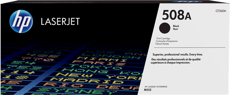 HP 508A black toner (CF360A) (CF360A) (3)5.0/5.0 standard capacity ~6,000 pages kr2,370.91VAT incl., free shipping directly from stock Delivery time 1-2 days add to basket HP 508A black ~6,000 pages39.5 p / page kr2,370.91 HP 508A cyan ~5,000 pages59.5 p / page kr2,972.71 HP 508A magenta ~5,000 pages59.5 p / page kr2,972.71 HP 508A yellow ~5,000 pages59.5 p / page kr2,972.71 Product information "HP 508A black toner"Keep business productivity high—avoid wasted time and supplies with reliable Original HP LaserJet toner cartridges. HP ColorSphere technology delivers consistent, professional color on marketing, financial, design, and engineering documents.Features- Produce standout documents and marketing materials, using Original HP LaserJet toner cartridges with HP ColorSphere technology. Get consistent, print shop-quality results on a wide range of laser papers designed for office printing.- Keep printing costs low while maintaining productivity. Original HP LaserJet toner cartridges deliver consistent, uninterrupted printing. Because cartridges are designed for exceptional reliability, you avoid wasted supplies and expensive delays.- Install cartridges quickly and easily—plus, intelligence built into Original HP LaserJet toner cartridges makes usage tracking and reordering simple. Enjoy easy recycling—cartridges returned via HP Planet Partners are recycled responsibly.2 Read moreread lessSuitable for the following printersHP Color LaserJetColor LaserJet Enterprise M552dnColor LaserJet Enterprise M553dnColor LaserJet Enterprise M553nColor LaserJet Enterprise M553xLaserJet Enterprise Flow M577cLaserJet Enterprise M577dnLaserJet Enterprise M577fHP LaserJet EnterpriseLaserJet Enterprise M577dn MFPtechnical dataLogistics dataMaster (outer) cases per pallet layer20 pc(s)Pallet weight (EU)134 gPallet gross weight185.7 gTechnical detailsBox contentsToner cartridge; Recycling guideCompatibilityHP 508 toner cartridges work with: HP LaserJet Enterprise M552, M553, M577Harmonized System (HS) code84439990Other featuresProduct_type_testToner cartridgePackaging dataPackage typeBoxPackage weight1180 gPackage height161 mmPackage depth147 mmPackage width395 mmFeaturesMaster (outer) cases per pallet140 pc(s)Layers per pallet6 pc(s)Products per pallet (EU)96 pc(s)Pallet size (EU)1198 x 800 x 1276 mmPallet weight (imperial)408.4 lbsPallet dimensions (W x D x H) (imperial)47.2 x 39.3 x 50 "Printing colours BlackPage yield6000 pagesPrint technologyLaserCompatible productsColor LaserJet Enterprise M553TypeOriginalQuantity1HP segment Home, Home officeCountry of originJapanQuantity per box1 pc(s)OEM codeCF360APage yield (black)6000 pagesBlack toner page yield6000 pagescartridge capacityStandardQuantity per pack1 pc(s)Brand compatibilityHPOriginalYesProduct typeToner cartridgeWeight & dimensionsWeight880 gHeight161 mmDepth147 mmWidth395 mmPallet dimensions (W x D x H)1198 x 997 x 1276 mmProducts per pallet140 pc(s)Operational conditionsOperating temperature (T-T)10 - 32.5 °CStorage temperature (T-T)-20 - 40 °COperating relative humidity (H-H)20 - 80 %Storage relative humidity (H-H)10 - 80 %All details without engagement. Data source: IceCatManufacturer information on product safety (GPSR)HP Deutschland GmbHHerrenberger Straße 14071034 Böblingen E-mail: reg@hp.com Website: https://www.hp.com/de-de/home.html customer ratings8/24/2019, Maya H. (purchased: HP 508A cyan toner (CF361A))Translated from German:scnelle liferung well eingepakt4/9/2019, Ariane K. (purchased: HP 508A magenta toner (CF363A))Translated from German:Very good original Hp toner as in the picture and Tex5/14/2018, Helena S. (purchased: HP 508A magenta toner (CF363A))Translated from German:Original toner with very good print image. Suitable accessories for your printer Original HP 508X black toner (CF360X)colourTape Width Size colour: Page number:~12,500 pagesPage price:26.5 p / pagekr3,314.50VAT incl., free shipping directly from stock add to basket directly from stock add to basket directly from stock add to basket directly from stock add to basket Price / performance winner compatible with HP 508A Prindo Classic black tonercolourTape Width Size colour: Page number:~6,000 pagesPage price:23.5 p / pagekr1,409.63VAT incl., free shipping directly from stock add to basket directly from stock add to basket directly from stock add to basket directly from stock add to basket directly from stock add to basket directly from stock add to basket directly from stock add to basket directly from stock add to basket Original HP toner for your printer. HP 508X black toner (CF360X)colourTape Width Size:XL colour: Page number:~12,500 pagesPage price:26.5 p / pagekr3,314.50VAT incl., free shipping directly from stock add to basket HP 508X cyan toner (CF361X)colourTape Width Size:XL colour: Page number:~9,500 pagesPage price:48.3 p / pagekr4,588.49VAT incl., free shipping directly from stock add to basket HP 508X magenta toner (CF363X)colourTape Width Size:XL colour: Page number:~9,500 pagesPage price:48.3 p / pagekr4,588.49VAT incl., free shipping directly from stock add to basket HP 508X yellow toner (CF362X)colourTape Width Size:XL colour: Page number:~9,500 pagesPage price:48.3 p / pagekr4,588.49VAT incl., free shipping directly from stock add to basket Our price / performance winners Compatible Prindo Classic toner for your printer.✅ Level indicator ✅ More printing performance ✅ 5-year warranty ✅ No loss of warranty for your printer compatible with HP 508A Prindo Classic black tonercolourTape Width Size:Standard colour: Page number:~6,000 pagesPage price:23.5 p / pagekr1,409.63VAT incl., free shipping directly from stock add to basket compatible with HP 508X Prindo Classic XL black tonercolourTape Width Size:XL colour: Page number:~12,500 pagesPage price:16.0 p / pagekr2,001.78VAT incl., free shipping directly from stock add to basket compatible with HP 508A Prindo Classic cyan tonercolourTape Width Size:Standard colour: Page number:~5,000 page
