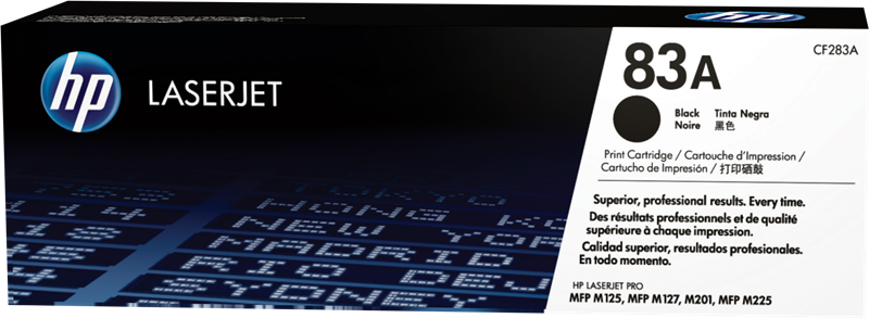 HP 83A black toner (CF283A) (CF283A) (14)5.0/5.0 toner black ~1,500 pages kr988.94VAT incl., free shipping directly from stock Delivery time 1-2 days add to basket Product information "HP 83A black toner"Ensure business documents look professional when you print with Original HP LaserJet toner cartridges. Stay productive by avoiding wasted time and supplies. These reliable cartridges are specifically designed for your HP LaserJet Pro MFP.- Expect quality—and get it time after time—from Original HP toner cartridges. Avoid the reprints, wasted supplies, and costly delays that can occur with remanufactured cartridges.- Help keep business moving forward. Trust Original HP toner cartridges for consistent, uninterrupted printing that keeps you on task and on budget.- Don’t miss a beat. Replace Original HP toner cartridges in seconds, and get back to printing. They’re specifically designed for your HP LaserJet printer or MFP—with the toner and imaging drum in one easy-to-install supply. Read moreread lessSuitable for the following printersHP LaserJetLaserJet Pro M201dwLaserJet Pro M201nLaserJet Pro MFP M125aLaserJet Pro MFP M125nwLaserJet Pro MFP M127fnLaserJet Pro MFP M127fwLaserJet Pro MFP M225dnLaserJet Pro MFP M225dwtechnical dataLogistics dataMaster (outer) cases per pallet layer21 pc(s)Pallet weight (EU)159.9 gPallet gross weight159.9 gPallet height1269 mmPallet length1000 mmPallet width1175 mmTechnical detailsBox contents1 CartridgeCompatibilityHP 83 toner cartridges work with: HP LaserJet Pro M127, M201Harmonized System (HS) code84439990Other featuresProduct_type_testToner cartridgePackaging dataPackage typeBoxPackage weight830 gPackage height125 mmPackage depth113 mmPackage width375 mmFeaturesMaster (outer) cases per pallet168 pc(s)Layers per pallet8 pc(s)Products per pallet (EU)168 pc(s)Pallet size (EU)1200 x 820 x 1149 mmPrinting colours BlackPage yield1500 pagesPrint technologyLaserCompatible productsLaserJet Pro MFP M125 series,, LaserJet Pro MFP M127 series,, LaserJet Pro M201n, , LaserJet Pro M201dw, , LaserJet Pro MFP M225dn, , LaserJet Pro MFP M225dw.TypeOriginalQuantity1HP segment BusinessCountry of originJapanQuantity per box1 pc(s)OEM codeCF283APage yield (black)1500 pagesMultipackNoBlack toner page yield1500 pagescartridge capacityStandard YieldBlack toner cartridges quantity1Quantity per pack1 pc(s)Brand compatibilityHPOriginalYesProduct typeToner cartridgeWeight & dimensionsWeight620 gHeight125 mmDepth113 mmWidth375 mmPallet dimensions (W x D x H)1200 x 820 x 1149 mmProducts per pallet168 pc(s)Operational conditionsOperating temperature (T-T)15 - 25 °CStorage temperature (T-T)-20 - 40 °COperating relative humidity (H-H)20 - 80 %Storage relative humidity (H-H)10 - 90 %All details without engagement. Data source: IceCatManufacturer information on product safety (GPSR)HP Deutschland GmbHHerrenberger Straße 14071034 Böblingen E-mail: reg@hp.com Website: https://www.hp.com/de-de/home.html customer ratings3/12/2024, Lorenzo H. Translated from German:Price is right.7/3/2020, Nila D. Translated from German:Original HP - good price!4/18/2020, Kaja K. Translated from German:I am very satisfied with the printer cartridgeShow more reviews. Suitable accessories for your printer Original HP 83A multipack black (CF283AD)colourTape Width Size colour: Page number:~3,000 pagesPage price:62.8 p / pagekr1,883.75VAT incl., free shipping directly from stock add to basket Top seller compatible with HP 83A Prindo Green black tonercolourTape Width Size colour: Page number:~1,500 pagesPage price:41.8 p / pagekr626.52VAT incl., free shipping directly from stock add to basket Price / performance winner compatible with HP 83A Prindo Classic black tonercolourTape Width Size colour: Page number:~1,500 pagesPage price:38.8 p / pagekr581.72VAT incl., free shipping directly from stock add to basket Original HP multipack for your printer. HP 83A multipack black (CF283AD)colourTape Width Size:Standard colour: Page number:~3,000 pagesPage price:62.8 p / pagekr1,883.75VAT incl., free shipping directly from stock add to basket Our Top Sellers Compatible Prindo Green toner for your printer.✅ Level indicator ✅ Environmentally friendly recycled ✅ More printing performance ✅ 5-year warranty ✅ No loss of warranty for your printer compatible with HP 83A Prindo Green black tonercolourTape Width Size:Standard colour: Page number:~1,500 pagesPage price:41.8 p / pagekr626.52VAT incl., free shipping directly from stock add to basket Our price / performance winners Compatible Prindo Classic toner for your printer.✅ Level indicator ✅ More printing performance ✅ 5-year warranty ✅ No loss of warranty for your printer compatible with HP 83A Prindo Classic black tonercolourTape Width Size:Standard colour: Page number:~1,500 pagesPage price:38.8 p / pagekr581.72VAT incl., free shipping directly from stock add to basket Your product is right in your shopping cart! Select your printer to make sure the selected product fits for you.Loading...