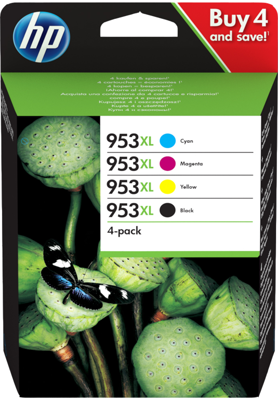 HP 953 XL multipack black / cyan / magenta / yellow (3HZ52AE MCVP 01) (3HZ52AE MCVP 01) (10)4.9/5.0 multipack black / cyan / magenta / yellow ~6,350 pages kr2,283.30-18%kr1,866.83VAT incl., free shipping directly from stock Delivery time 1-2 days add to basket Content 953 XL black ~2.000 pages 29.5 p / page 953 XL cyan ~1.450 pages 29.3 p / page 953 XL magenta ~1.450 pages 29.3 p / page 953 XL yellow ~1.450 pages 29.3 p / page Product information "HP 953 XL multipack black / cyan / magenta / yellow"multipack black / cyan / magenta / yellow ~6,350 pages Read moreread lessSuitable for the following printersHP Officejet ProOfficejet Pro 7720 All-in-OneOfficejet Pro 7730 All-in-OneOfficejet Pro 7740 All-in-OneOfficejet Pro 8210Officejet Pro 8218Officejet Pro 8710 All-in OneOfficejet Pro 8715 e-All-in OneOfficejet Pro 8718 e-All-in OneOfficejet Pro 8719 e-All-in OneOfficejet Pro 8720 e-All-in OneOfficejet Pro 8725 e-All-in OneOfficejet Pro 8728 e-All-in OneOfficejet Pro 8730 e-All-in OneOfficejet Pro 8740 e-All-in OneManufacturer information on product safety (GPSR)HP Deutschland GmbHHerrenberger Straße 14071034 Böblingen E-mail: reg@hp.com Website: https://www.hp.com/de-de/home.html customer ratings8/12/2025, Tore S. Translated from German:Too expensive12/29/2024, Kimberley N. Translated from German:Is actually far too expensive12/8/2024, Raul V. Translated from German:Good extensive quality. Unfortunately a little more expensiveShow more reviews. Suitable accessories for your printer Original HP 953 black ink cartridge (L0S58AE)colourTape Width Size colour: Page number:~900 pagesPage price:50.1 p / pagekr451.26VAT incl., free shipping directly from stock add to basket directly from stock add to basket directly from stock add to basket directly from stock add to basket directly from stock add to basket directly from stock add to basket directly from stock add to basket directly from stock add to basket directly from stock add to basket Top seller compatible with HP 953 XL black Prindo Green XL black ink cartridgecolourTape Width Size colour: Page number:~2,000 pagesPage price:23.3 p / pagekr465.57VAT incl., free shipping directly from stock add to basket directly from stock add to basket directly from stock add to basket directly from stock add to basket Price / performance winner compatible with HP 953 XL black Prindo Classic XL black ink cartridgecolourTape Width Size colour: Page number:~2,000 pagesPage price:21.6 p / pagekr432.42VAT incl., free shipping directly from stock add to basket directly from stock add to basket directly from stock add to basket directly from stock add to basket directly from stock add to basket directly from stock add to basket directly from stock add to basket Best price compatible with HP 953 XL black Prindo Basic XL black ink cartridgecolourTape Width Size colour: Page number:~2,000 pagesPage price:20.0 p / pagekr399.03VAT incl., free shipping directly from stock add to basket directly from stock add to basket directly from stock add to basket directly from stock add to basket Original HP multipack for your printer. HP 953 black ink cartridge (L0S58AE)colourTape Width Size:Standard colour: Page number:~900 pagesPage price:50.1 p / pagekr451.26VAT incl., free shipping directly from stock add to basket HP 953 XL black ink cartridge (L0S70AE)colourTape Width Size:XL colour: Page number:~2,000 pagesPage price:36.1 p / pagekr721.86VAT incl., free shipping directly from stock add to basket HP 953 cyan ink cartridge (F6U12AE)colourTape Width Size:Standard colour: Page number:~630 pagesPage price:50.5 p / pagekr317.94VAT incl., free shipping directly from stock add to basket HP 953 XL cyan ink cartridge (F6U16AE)colourTape Width Size:XL colour: Page number:~1,450 pagesPage price:35.9 p / pagekr520.48VAT incl., free shipping directly from stock add to basket HP 953 magenta ink cartridge (F6U13AE)colourTape Width Size:Standard colour: Page number:~630 pagesPage price:51.4 p / pagekr323.64VAT incl., free shipping directly from stock add to basket HP 953 XL magenta ink cartridge (F6U17AE)colourTape Width Size:XL colour: Page number:~1,450 pagesPage price:35.9 p / pagekr520.48VAT incl., free shipping directly from stock add to basket HP 953 yellow ink cartridge (F6U14AE)colourTape Width Size:Standard colour: Page number:~630 pagesPage price:50.5 p / pagekr317.94VAT incl., free shipping directly from stock add to basket HP 953 XL yellow ink cartridge (F6U18AE)colourTape Width Size:XL colour: Page number:~1,450 pagesPage price:35.9 p / pagekr520.48VAT incl., free shipping directly from stock add to basket HP 953 multipack black / cyan / magenta / yellow (6ZC69AE)colourTape Width Size:Standard colour: Page number:~2,790 pagesPage price:49.9 p / pagekr1,390.90VAT incl., free shipping directly from stock add to basket Our Top Sellers Compatible Prindo Green Ink cartridge for your printer.✅ Level indicator ✅ Environmentally friendly recycled ✅ More printing performance ✅ 5-year warranty ✅ No loss of warranty for your printer compatible with HP 953 XL black Prindo Green XL black ink cartridgecolourTape Width Size:XL colour: Page number:~2,000 pagesPage price:23.3 p / pagekr465.57VAT incl., free shipping directly from stock add to basket compatible with HP 953 XL cyan Prindo Green XL cyan ink cartridgecolourTape Width Size:XL colour: Page number:~1,450 pagesPage price:22.8 p / pagekr330.28VAT incl., free shipping directly from stock add to basket compatible with HP 953 XL magenta Prindo Green XL magenta ink cartridgecolourTape Width Size:XL colour: Page number:~1,450 pagesPage price:22.8 p / pagekr330.28VAT incl., free shipping directly from stock add to basket compatible with HP 953 XL yellow Prindo Green XL yellow ink cartridgecolourTape Width Size:XL colour: Page number:~1,450 pagesPage price:22.9 p / pagekr332.49VAT incl., free shipping directly from stock add to basket Our price / performance winners Compatible Prindo Classic Ink cartridge for your printer.✅ Le