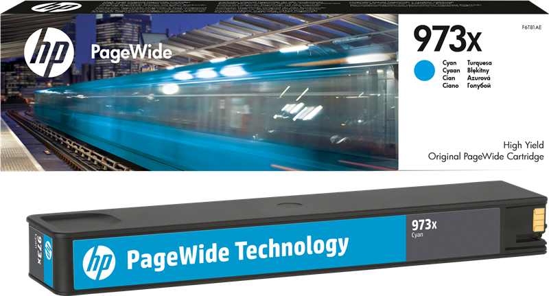 HP 973X cyan ink cartridge (F6T81AE) (F6T81AE) (40)5.0/5.0 ink cartridge cyan ~7,000 pages kr1,785.51VAT incl., free shipping directly from stock Delivery time 1-2 days add to basket 973X black ~10,000 pages18.8 p / page kr1,881.72 973X cyan ~7,000 pages25.5 p / page kr1,785.51 973X magenta ~7,000 pages25.5 p / page kr1,785.51 973X yellow ~7,000 pages25.5 p / page kr1,785.51 Product information "HP 973X cyan ink cartridge F6T81AE"ink cartridge cyan ~7,000 pages Read moreread lessSuitable for the following printersHP PageWide ManagedPageWide Managed MFP P57750dwPageWide Managed P55250dwHP PageWide ProPageWide Pro 452dwPageWide Pro 452dwtPageWide Pro 477dwPageWide Pro 477dwttechnical dataOther featuresTechnologyPageWidePackaging contentQuantity per pack1 pc(s)Operational conditionsOperating temperature (T-T)15 - 30 °CStorage relative humidity (H-H)20 - 80 %Storage temperature (T-T)-40 - 60 °CFeaturesPrinting colours Cyancartridge capacityHighHP segment Business, EnterpriseOEM codeF6T81AEOriginalYesColour ink page yield7000 pagesColour ink volume86 mlquantity of coloured inks 1MultipackNoCompatibilityHP PageWide Pro 452, 477Brand compatibilityHPTypeOriginalWeight & dimensionsWeight180 gHeight62 mmDepth28 mmWidth215 mmPackaging dataPackage weight200 gPackage height62 mmPackage depth28 mmPackage width215 mmAll details without engagement. Data source: IceCatManufacturer information on product safety (GPSR)HP Deutschland GmbHHerrenberger Straße 14071034 Böblingen E-mail: reg@hp.com Website: https://www.hp.com/de-de/home.html customer ratings5/26/2025, Fenja V. (purchased: HP 973X magenta ink cartridge (F6T82AE))Translated from German:too expensive4/14/2024, Niclas R. (purchased: HP 973X black ink cartridge (L0S07AE))Translated from German:The original HP ink cartridges deliver the best results and the printer doesn't "bitch".1/15/2024, Melis H. (purchased: HP 973X black ink cartridge (L0S07AE))Translated from German:Good performance. Could be cheaper.Show more reviews. Suitable accessories for your printer Original HP 913A black ink cartridge (L0R95AE)colourTape Width Size colour: Page number:~3,500 pagesPage price:30.2 p / pagekr1,056.55VAT incl., free shipping directly from stock add to basket directly from stock add to basket directly from stock add to basket directly from stock add to basket Top seller compatible with HP 913A black Prindo Green black ink cartridgecolourTape Width Size colour: Page number:~3,500 pagesPage price:15.3 p / pagekr536.07VAT incl., free shipping directly from stock add to basket directly from stock add to basket directly from stock add to basket directly from stock add to basket directly from stock add to basket directly from stock add to basket directly from stock add to basket directly from stock add to basket Price / performance winner compatible with HP 913A black Prindo Classic black ink cartridgecolourTape Width Size colour: Page number:~3,500 pagesPage price:13.5 p / pagekr473.60VAT incl., free shipping directly from stock add to basket directly from stock add to basket Delivery date unknown add to basket directly from stock add to basket directly from stock add to basket directly from stock add to basket directly from stock add to basket directly from stock add to basket directly from stock add to basket Best price Prindo Basic multipack black / cyan / magenta / yellowcolourTape Width Size colour: Page number:~12,500 pagesPage price:12.5 p / pagekr1,894.40-18%kr1,562.84VAT incl., free shipping directly from stock add to basket Original HP Ink cartridge for your printer. HP 913A black ink cartridge (L0R95AE)colourTape Width Size:Standard colour: Page number:~3,500 pagesPage price:30.2 p / pagekr1,056.55VAT incl., free shipping directly from stock add to basket HP 913A cyan ink cartridge (F6T77AE)colourTape Width Size:Standard colour: Page number:~3,000 pagesPage price:37.3 p / pagekr1,119.49VAT incl., free shipping directly from stock add to basket HP 913A magenta ink cartridge (F6T78AE)colourTape Width Size:Standard colour: Page number:~3,000 pagesPage price:37.3 p / pagekr1,119.49VAT incl., free shipping directly from stock add to basket HP 913A yellow ink cartridge (F6T79AE)colourTape Width Size:Standard colour: Page number:~3,000 pagesPage price:37.3 p / pagekr1,119.49VAT incl., free shipping directly from stock add to basket Our Top Sellers Compatible Prindo Green Ink cartridge for your printer.✅ Level indicator ✅ Environmentally friendly recycled ✅ More printing performance ✅ 5-year warranty ✅ No loss of warranty for your printer compatible with HP 913A black Prindo Green black ink cartridgecolourTape Width Size:Standard colour: Page number:~3,500 pagesPage price:15.3 p / pagekr536.07VAT incl., free shipping directly from stock add to basket compatible with HP 973X black Prindo Green XL black ink cartridgecolourTape Width Size:XL colour: Page number:~10,000 pagesPage price:8.5 p / pagekr853.78VAT incl., free shipping directly from stock add to basket compatible with HP 913A cyan Prindo Green cyan ink cartridgecolourTape Width Size:Standard colour: Page number:~3,000 pagesPage price:23.0 p / pagekr691.50VAT incl., free shipping directly from stock add to basket compatible with HP 973X cyan Prindo Green XL cyan ink cartridgecolourTape Width Size:XL colour: Page number:~7,000 pagesPage price:11.3 p / pagekr790.50VAT incl., free shipping directly from stock add to basket compatible with HP 913A magenta Prindo Green magenta ink cartridgecolourTape Width Size:Standard colour: Page number:~3,000 pagesPage price:23.0 p / pagekr691.50VAT incl., free shipping directly from stock add to basket compatible with HP 973X magenta Prindo Green XL magenta ink cartridgecolourTape Width Size:XL colour: Page number:~7,000 pagesPage price:11.6 p / pagekr811.44VAT incl., free shipping directly from stock add to basket compatible with HP 913A yellow Prindo Green yellow ink cartridgecolourTape Width Size:Standard colour: Page number:~3,000 pagesPage price:23.0 p