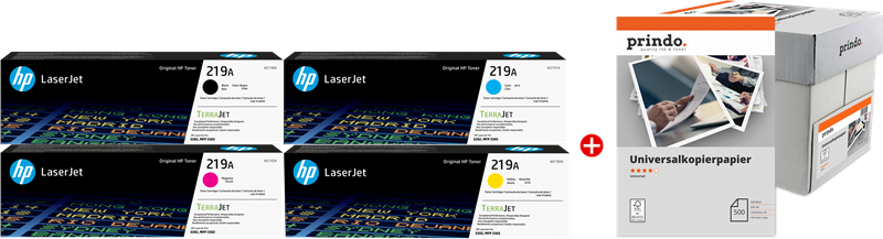 HP + Prindo Universal Papier 2500 Blatt black / cyan / magenta / yellow / White value pack (219A MCVP) (219A MCVP) value pack black / cyan / magenta / yellow / White ~4,900 pages kr4,015.19VAT incl., free shipping directly from stock Delivery time 1-2 days add to basket Content HP 219A black ~1.300 pages 62.9 p / page HP 219A cyan ~1.200 pages 80.4 p / page HP 219A magenta ~1.200 pages 80.4 p / page HP 219A yellow ~1.200 pages 80.4 p / page White Product information "HP + Prindo Universal Papier 2500 Blatt black / cyan / magenta / yellow / White value pack 219A MCVP"value pack black / cyan / magenta / yellow / White ~4,900 pages Read moreread lessSuitable for the following printersHP LaserJet ProColor LaserJet Pro 3202dwColor LaserJet Pro MFP 3302fdngColor LaserJet Pro MFP 3302fdwgColor LaserJet Pro MFP 3302sdwgManufacturer information on product safety (GPSR)HP Deutschland GmbHHerrenberger Straße 14071034 Böblingen E-mail: reg@hp.com Website: https://www.hp.com/de-de/home.html Suitable accessories for your printer Original HP 219A black toner (W2190A)colourTape Width Size colour: Page number:~1,300 pagesPage price:64.0 p / pagekr831.45VAT incl., free shipping directly from stock add to basket directly from stock add to basket directly from stock add to basket directly from stock add to basket directly from stock add to basket directly from stock add to basket directly from stock add to basket directly from stock add to basket directly from stock add to basket Price / performance winner compatible with HP 219A Prindo Classic black tonercolourTape Width Size colour: Page number:~1,300 pagesPage price:36.8 p / pagekr478.83VAT incl., free shipping directly from stock add to basket directly from stock add to basket directly from stock add to basket directly from stock add to basket directly from stock add to basket directly from stock add to basket directly from stock add to basket directly from stock add to basket directly from stock add to basket directly from stock add to basket Original HP toner for your printer. HP 219A black toner (W2190A)colourTape Width Size:Standard colour: Page number:~1,300 pagesPage price:64.0 p / pagekr831.45VAT incl., free shipping directly from stock add to basket HP 219X black toner (W2190X)colourTape Width Size:XL colour: Page number:~3,200 pagesPage price:38.1 p / pagekr1,219.66VAT incl., free shipping directly from stock add to basket HP + Prindo Universal Papier 2500 Blatt black / cyan / magenta / yellow / White value pack (219X MCVP)colourTape Width Size:XL colour: Page number:~10,700 pagesPage price:52.9 p / pagekr5,660.63VAT incl., free shipping directly from stock add to basket HP 219A cyan toner (W2191A)colourTape Width Size:Standard colour: Page number:~1,200 pagesPage price:81.8 p / pagekr981.40VAT incl., free shipping directly from stock add to basket HP 219X cyan toner (W2191X)colourTape Width Size:XL colour: Page number:~2,500 pagesPage price:56.0 p / pagekr1,400.67VAT incl., free shipping directly from stock add to basket HP 219A magenta toner (W2193A)colourTape Width Size:Standard colour: Page number:~1,200 pagesPage price:81.8 p / pagekr981.40VAT incl., free shipping directly from stock add to basket HP 219X magenta toner (W2193X)colourTape Width Size:XL colour: Page number:~2,500 pagesPage price:56.0 p / pagekr1,400.67VAT incl., free shipping directly from stock add to basket HP 219A yellow toner (W2192A)colourTape Width Size:Standard colour: Page number:~1,200 pagesPage price:81.8 p / pagekr981.40VAT incl., free shipping directly from stock add to basket HP 219X yellow toner (W2192X)colourTape Width Size:XL colour: Page number:~2,500 pagesPage price:56.0 p / pagekr1,400.67VAT incl., free shipping directly from stock add to basket Our price / performance winners Compatible Prindo Classic toner for your printer.✅ Level indicator ✅ More printing performance ✅ 5-year warranty ✅ No loss of warranty for your printer compatible with HP 219A Prindo Classic black tonercolourTape Width Size:Standard colour: Page number:~1,300 pagesPage price:36.8 p / pagekr478.83VAT incl., free shipping directly from stock add to basket compatible with HP 219X Prindo Classic XL black tonercolourTape Width Size:XL colour: Page number:~3,200 pagesPage price:23.1 p / pagekr738.84VAT incl., free shipping directly from stock add to basket Prindo Classic black / cyan / magenta / yellow / White value packcolourTape Width Size:Standard colour: Page number:~4,900 pagesPage price:37.4 p / pagekr2,139.29-14%kr1,831.93VAT incl., free shipping directly from stock add to basket Prindo Classic XL black / cyan / magenta / yellow / White value packcolourTape Width Size:XL colour: Page number:~10,700 pagesPage price:29.6 p / pagekr3,476.32-9%kr3,169.43VAT incl., free shipping directly from stock add to basket compatible with HP 219A Prindo Classic cyan tonercolourTape Width Size:Standard colour: Page number:~1,200 pagesPage price:37.6 p / pagekr451.15VAT incl., free shipping directly from stock add to basket compatible with HP 219X Prindo Classic XL cyan tonercolourTape Width Size:XL colour: Page number:~2,500 pagesPage price:33.7 p / pagekr841.45VAT incl., free shipping directly from stock add to basket compatible with HP 219A Prindo Classic magenta tonercolourTape Width Size:Standard colour: Page number:~1,200 pagesPage price:37.6 p / pagekr451.15VAT incl., free shipping directly from stock add to basket compatible with HP 219X Prindo Classic XL magenta tonercolourTape Width Size:XL colour: Page number:~2,500 pagesPage price:32.1 p / pagekr802.60VAT incl., free shipping directly from stock add to basket compatible with HP 219A Prindo Classic yellow tonercolourTape Width Size:Standard colour: Page number:~1,200 pagesPage price:37.6 p / pagekr451.15VAT incl., free shipping directly from stock add to basket compatible with HP 219X Prindo Classic XL yellow tonercolourTape Width Size:XL colour: Page number:~2,500 pagesPage price:31.5 p / pagekr786.42VAT incl., free shipping dir
