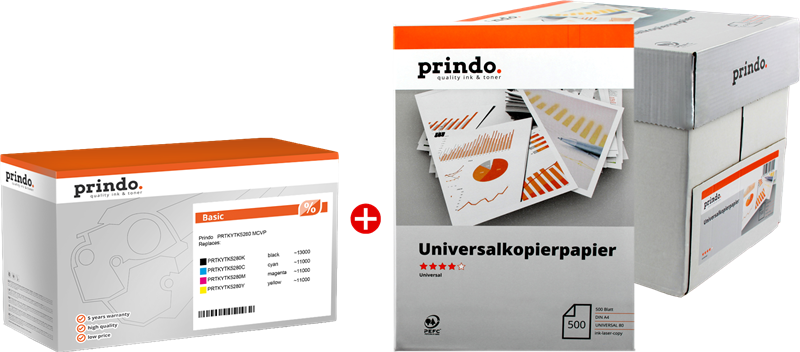 Prindo Basic black / cyan / magenta / yellow value pack (PRTKYTK5280 MCVP) (1)5.0/5.0 value pack black / cyan / magenta / yellow kr4,544.27-48%kr2,368.00VAT incl., free shipping directly from stock Delivery time 1-2 days add to basket Content White Classic cyan ~11.000 pages 6.7 p / page Classic magenta ~11.000 pages 6.7 p / page Classic yellow ~11.000 pages 6.7 p / page Graduated pricesfrom 1 pcs.kr2,368.00VAT incl.from 2 pcs.kr2,249.63VAT incl.from 4 pcs.kr2,131.23VAT incl.from 6 pcs.kr2,012.83VAT incl. Product information "Prindo Basic black / cyan / magenta / yellow value pack PRTKYTK5280 MCVP"value pack black / cyan / magenta / yellow Prindo Promise: Top quality for a fair price, that is what our exclusive private label product line stand for Remanufactured original toners and cartridges, working parts changes and only highest quality of colors and materials Only selected partners and suppliers 5 years guarantee on Prindo products – no loss of warranty for your printer Read moreread lessSuitable for the following printersKyocera ECOSYS MECOSYS M6235cidnECOSYS M6635cidnKyocera ECOSYS PECOSYS P6235cdntechnical dataWeight & dimensionsWeight15500 kgHeight420 mmDepth605 mmWidth410 mmFeaturesBrand compatibilityPrindoCartridge return & recyclingYesMaster (outer) case GTIN (EAN/UPC)SizeStandardYesAll details without engagement. Data source: IceCatManufacturer information on product safety (GPSR)Media-Concept Bürobedarf GmbH Inselkammerstrasse 582008 Unterhaching E-mail: mail@prindo.no Website: www.prindo.no customer ratings3/25/2025, Isabell H. Translated from German:I put the supplied toner cartridges in storage and only use them when the old ones are empty. Suitable accessories for your printer Original Kyocera TK-5280K black toner (1T02TW0NL0)colourTape Width Size colour: Page number:~13,000 pagesPage price:13.9 p / pagekr1,803.08VAT incl., free shipping directly from stock add to basket Delivery date unknown add to basket directly from stock add to basket directly from stock add to basket Top seller compatible with Kyocera TK-5280C Prindo Green cyan tonercolourTape Width Size colour: Page number:~11,000 pagesPage price:13.8 p / pagekr1,521.20VAT incl., free shipping directly from stock add to basket directly from stock add to basket directly from stock add to basket Price / performance winner compatible with Kyocera TK-5280K Prindo Classic black tonercolourTape Width Size colour: Page number:~13,000 pagesPage price:7.3 p / pagekr947.20VAT incl., free shipping directly from stock add to basket directly from stock add to basket directly from stock add to basket directly from stock add to basket Original Kyocera toner for your printer. Kyocera TK-5280K black toner (1T02TW0NL0)colourTape Width Size:Standard colour: Page number:~13,000 pagesPage price:13.9 p / pagekr1,803.08VAT incl., free shipping directly from stock add to basket Kyocera TK-5280C cyan toner (1T02TWCNL0)colourTape Width Size:Standard colour: Page number:~11,000 pagesPage price:19.9 p / pagekr2,188.38VAT incl., free shipping Delivery date unknown add to basket Kyocera TK-5280M magenta toner (1T02TWBNL0)colourTape Width Size:Standard colour: Page number:~11,000 pagesPage price:19.9 p / pagekr2,188.38VAT incl., free shipping directly from stock add to basket Kyocera TK-5280Y yellow toner (1T02TWANL0)colourTape Width Size:Standard colour: Page number:~11,000 pagesPage price:19.9 p / pagekr2,188.38VAT incl., free shipping directly from stock add to basket Our Top Sellers Compatible Prindo Green toner for your printer.✅ Level indicator ✅ Environmentally friendly recycled ✅ More printing performance ✅ 5-year warranty ✅ No loss of warranty for your printer compatible with Kyocera TK-5280C Prindo Green cyan tonercolourTape Width Size:Standard colour: Page number:~11,000 pagesPage price:13.8 p / pagekr1,521.20VAT incl., free shipping directly from stock add to basket compatible with Kyocera TK-5280M Prindo Green magenta tonercolourTape Width Size:Standard colour: Page number:~11,000 pagesPage price:13.8 p / pagekr1,521.20VAT incl., free shipping directly from stock add to basket compatible with Kyocera TK-5280Y Prindo Green yellow tonercolourTape Width Size:Standard colour: Page number:~11,000 pagesPage price:13.8 p / pagekr1,521.20VAT incl., free shipping directly from stock add to basket Our price / performance winners Compatible Prindo Classic toner for your printer.✅ Level indicator ✅ More printing performance ✅ 5-year warranty ✅ No loss of warranty for your printer compatible with Kyocera TK-5280K Prindo Classic black tonercolourTape Width Size:Standard colour: Page number:~13,000 pagesPage price:7.3 p / pagekr947.20VAT incl., free shipping directly from stock add to basket compatible with Kyocera TK-5280C Prindo Classic cyan tonercolourTape Width Size:Standard colour: Page number:~11,000 pagesPage price:12.8 p / pagekr1,412.42VAT incl., free shipping directly from stock add to basket compatible with Kyocera TK-5280M Prindo Classic magenta tonercolourTape Width Size:Standard colour: Page number:~11,000 pagesPage price:12.8 p / pagekr1,412.42VAT incl., free shipping directly from stock add to basket compatible with Kyocera TK-5280Y Prindo Classic yellow tonercolourTape Width Size:Standard colour: Page number:~11,000 pagesPage price:12.8 p / pagekr1,412.42VAT incl., free shipping directly from stock add to basket Your product is right in your shopping cart! Select your printer to make sure the selected product fits for you.Loading...