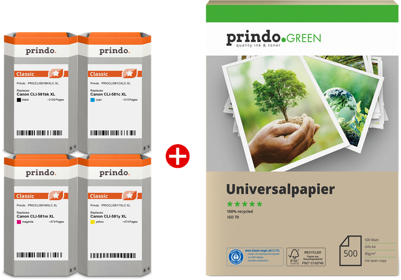 Prindo Classic black / cyan / magenta / yellow value pack (PRSCCLI581XL MCVP) value pack black / cyan / magenta / yellow kr502.69-12%kr443.93VAT incl., free shipping directly from stock Delivery time 1-2 days add to basket Content Prindo Classic XL black ~2.280 pages 4.3 p / page Prindo Classic XL cyan ~515 pages 19.1 p / page Prindo Classic XL magenta ~474 pages 20.7 p / page Prindo Classic XL yellow ~514 pages 19.0 p / page Graduated pricesfrom 1 pcs.kr443.93VAT incl.from 2 pcs.kr421.71VAT incl.from 4 pcs.kr399.52VAT incl.from 6 pcs.kr377.32VAT incl. Product information "Prindo Classic black / cyan / magenta / yellow value pack PRSCCLI581XL MCVP"value pack black / cyan / magenta / yellow Prindo Promise: Top quality for a fair price, that is what our exclusive private label product line stand for Remanufactured original toners and cartridges, working parts changes and only highest quality of colors and materials Only selected partners and suppliers 5 years guarantee on Prindo products – no loss of warranty for your printer Read moreread lessSuitable for the following printersCanon PIXMA TRPIXMA TR7550PIXMA TR8550TR7650Canon PIXMA TSPIXMA TS6150PIXMA TS6151PIXMA TS6250PIXMA TS6251PIXMA TS6350PIXMA TS6350aPIXMA TS6351PIXMA TS6351aPIXMA TS705PIXMA TS705aPIXMA TS8150PIXMA TS8151PIXMA TS8152PIXMA TS8250PIXMA TS8251PIXMA TS8252PIXMA TS8350PIXMA TS8350aPIXMA TS8351PIXMA TS8351aPIXMA TS8352PIXMA TS8352aPIXMA TS9150PIXMA TS9155PIXMA TS9550PIXMA TS9550aPIXMA TS9551CPIXMA TS9551Catechnical dataWeight & dimensionsWeight2760 kgHeight145 mmDepth310 mmWidth220 mmFeaturesBrand compatibilityPrindoCartridge return & recyclingYesMaster (outer) case GTIN (EAN/UPC)SizeXLYesAll details without engagement. Data source: IceCatManufacturer information on product safety (GPSR)Media-Concept Bürobedarf GmbH Inselkammerstrasse 582008 Unterhaching E-mail: mail@prindo.no Website: www.prindo.no Suitable accessories for your printer Original Canon CLI-581bk black ink cartridge (2106C001)colourTape Width Size colour: Page number:~750 pagesPage price:18.5 p / pagekr138.90VAT incl., free shipping directly from stock add to basket directly from stock add to basket directly from stock add to basket directly from stock add to basket directly from stock add to basket directly from stock add to basket directly from stock add to basket directly from stock add to basket directly from stock add to basket directly from stock add to basket directly from stock add to basket directly from stock add to basket directly from stock add to basket directly from stock add to basket directly from stock add to basket directly from stock add to basket directly from stock add to basket directly from stock add to basket Top seller compatible with Canon CLI-581bk XXL black (1998C001) Prindo Green XXL black ink cartridgecolourTape Width Size colour: Page number:~4,590 pagesPage price:3.7 p / pagekr169.27VAT incl., free shipping directly from stock add to basket directly from stock add to basket directly from stock add to basket directly from stock add to basket directly from stock add to basket directly from stock add to basket directly from stock add to basket Price / performance winner compatible with Canon CLI-581bk XL black (2052C001) Prindo Classic XL black ink cartridgecolourTape Width Size colour: Page number:~2,280 pagesPage price:4.9 p / pagekr111.10VAT incl., free shipping directly from stock add to basket directly from stock add to basket directly from stock add to basket directly from stock add to basket directly from stock add to basket directly from stock add to basket directly from stock add to basket directly from stock add to basket directly from stock add to basket directly from stock add to basket directly from stock add to basket directly from stock add to basket directly from stock add to basket Original Canon multipack for your printer. Canon CLI-581bk black ink cartridge (2106C001)colourTape Width Size:Standard colour: Page number:~750 pagesPage price:18.5 p / pagekr138.90VAT incl., free shipping directly from stock add to basket Canon PGI-580pgbk black ink cartridge (2078C001)colourTape Width Size:Standard colour: Page number:~200 pagesPage price:74.7 p / pagekr149.37VAT incl., free shipping directly from stock add to basket Canon CLI-581bk XL black ink cartridge (2052C001)colourTape Width Size:XL colour: Page number:~2,280 pagesPage price:8.0 p / pagekr181.60VAT incl., free shipping directly from stock add to basket Canon PGI-580pgbk XL black ink cartridge (2024C001)colourTape Width Size:XL colour: Page number:~400 pagesPage price:51.1 p / pagekr204.28VAT incl., free shipping directly from stock add to basket Canon CLI-581bk XXL black ink cartridge (1998C001)colourTape Width Size:XXL colour: Page number:~4,590 pagesPage price:5.6 p / pagekr257.33VAT incl., free shipping directly from stock add to basket Canon PGI-580pgbk XXL black ink cartridge (1970C001)colourTape Width Size:XXL colour: Page number:~600 pagesPage price:44.7 p / pagekr268.27VAT incl., free shipping directly from stock add to basket Canon CLI-581c cyan ink cartridge (2103C001)colourTape Width Size:Standard colour: Page number:~259 pagesPage price:53.6 p / pagekr138.90VAT incl., free shipping directly from stock add to basket Canon CLI-581c XL cyan ink cartridge (2049C001)colourTape Width Size:XL colour: Page number:~515 pagesPage price:35.3 p / pagekr181.60VAT incl., free shipping directly from stock add to basket Canon CLI-581c XXL cyan ink cartridge (1995C001)colourTape Width Size:XXL colour: Page number:~920 pagesPage price:28.0 p / pagekr257.57VAT incl., free shipping directly from stock add to basket Canon CLI-581m magenta ink cartridge (2104C001)colourTape Width Size:Standard colour: Page number:~237 pagesPage price:59.4 p / pagekr140.88VAT incl., free shipping directly from stock add to basket Canon CLI-581m XL magenta ink cartridge (2050C001)colourTape Width Size:XL colour: Page number:~474 pagesPage price:38.3 p / pagekr181.60VAT incl., free shi