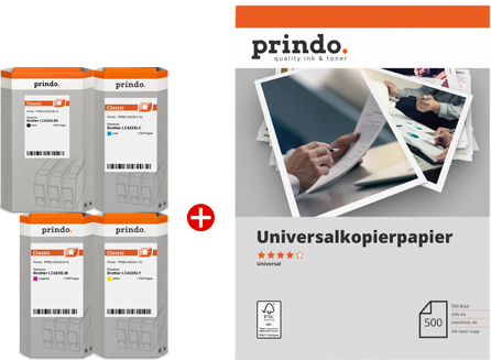 Prindo Classic black / cyan / magenta / yellow value pack (PRSBLC422XL MCVP) (1)5.0/5.0 value pack black / cyan / magenta / yellow ~7,500 pages kr861.11VAT incl., free shipping directly from stock Delivery time 1-2 days add to basket Content White Prindo Classic XL cyan ~1.500 pages 17.0 p / page Prindo Classic XL magenta ~1.500 pages 17.3 p / page Prindo Classic XL yellow ~1.500 pages 17.0 p / page Graduated pricesfrom 1 pcs.kr861.11VAT incl.from 2 pcs.kr818.08VAT incl.from 4 pcs.kr775.02VAT incl.from 6 pcs.kr731.97VAT incl. Product information "Prindo Classic black / cyan / magenta / yellow value pack PRSBLC422XL MCVP"value pack black / cyan / magenta / yellow ~7,500 pages Prindo Promise: Top quality for a fair price, that is what our exclusive private label product line stand for Remanufactured original toners and cartridges, working parts changes and only highest quality of colors and materials Only selected partners and suppliers 5 years guarantee on Prindo products – no loss of warranty for your printer Read moreread lessSuitable for the following printersBrother MFC-JMFC-J5340DWMFC-J5340DWEMFC-J5345DWMFC-J5740DWMFC-J6540DWMFC-J6540DWEMFC-J6940DWtechnical dataWeight & dimensionsWeight2900 kgHeight145 mmDepth310 mmWidth220 mmFeaturesBrand compatibilityPrindoCartridge return & recyclingYesMaster (outer) case GTIN (EAN/UPC)SizeXLYesPage yield7500 pagesAll details without engagement. Data source: IceCatManufacturer information on product safety (GPSR)Media-Concept Bürobedarf GmbH Inselkammerstrasse 582008 Unterhaching E-mail: mail@prindo.no Website: www.prindo.no customer ratings8/10/2024, Henri Z. Translated from German:Cool to copy. Fits well. Suitable accessories for your printer Original Brother LC422BK black ink cartridgecolourTape Width Size colour: Page number:~550 pagesPage price:45.6 p / pagekr250.70VAT incl., free shipping directly from stock add to basket directly from stock add to basket directly from stock add to basket directly from stock add to basket directly from stock add to basket directly from stock add to basket directly from stock add to basket directly from stock add to basket directly from stock add to basket directly from stock add to basket Price / performance winner compatible with Brother LC422BK black Prindo Classic black ink cartridgecolourTape Width Size colour: Page number:~550 pagesPage price:26.8 p / pagekr147.51VAT incl., free shipping directly from stock add to basket directly from stock add to basket directly from stock add to basket directly from stock add to basket directly from stock add to basket directly from stock add to basket directly from stock add to basket directly from stock add to basket directly from stock add to basket directly from stock add to basket Original Brother multipack for your printer. Brother LC422BK black ink cartridgecolourTape Width Size:Standard colour: Page number:~550 pagesPage price:45.6 p / pagekr250.70VAT incl., free shipping directly from stock add to basket Brother LC422XLBK black ink cartridgecolourTape Width Size:XL colour: Page number:~3,000 pagesPage price:15.8 p / pagekr472.90VAT incl., free shipping directly from stock add to basket Brother LC422C cyan ink cartridgecolourTape Width Size:Standard colour: Page number:~550 pagesPage price:32.7 p / pagekr179.97VAT incl., free shipping directly from stock add to basket Brother LC422XLC cyan ink cartridgecolourTape Width Size:XL colour: Page number:~1,500 pagesPage price:21.7 p / pagekr325.39VAT incl., free shipping directly from stock add to basket Brother LC422M magenta ink cartridgecolourTape Width Size:Standard colour: Page number:~550 pagesPage price:32.7 p / pagekr179.97VAT incl., free shipping directly from stock add to basket Brother LC422XLM magenta ink cartridgecolourTape Width Size:XL colour: Page number:~1,500 pagesPage price:21.7 p / pagekr325.39VAT incl., free shipping directly from stock add to basket Brother LC422Y yellow ink cartridgecolourTape Width Size:Standard colour: Page number:~550 pagesPage price:32.3 p / pagekr177.64VAT incl., free shipping directly from stock add to basket Brother LC422XLY yellow ink cartridgecolourTape Width Size:XL colour: Page number:~1,500 pagesPage price:21.7 p / pagekr325.39VAT incl., free shipping directly from stock add to basket Brother LC-422 multipack black / cyan / magenta / yellow (LC422VAL)colourTape Width Size:Standard colour: Page number:~2,200 pagesPage price:34.8 p / pagekr764.90VAT incl., free shipping directly from stock add to basket Brother LC-422XL multipack black / cyan / magenta / yellow (LC422XLVAL)colourTape Width Size:XL colour: Page number:~7,500 pagesPage price:18.7 p / pagekr1,401.02VAT incl., free shipping directly from stock add to basket Our price / performance winners Compatible Prindo Classic Ink cartridge for your printer.✅ Level indicator ✅ More printing performance ✅ 5-year warranty ✅ No loss of warranty for your printer compatible with Brother LC422BK black Prindo Classic black ink cartridgecolourTape Width Size:Standard colour: Page number:~550 pagesPage price:26.8 p / pagekr147.51VAT incl., free shipping directly from stock add to basket compatible with Brother LC422XLBK black Prindo Classic XL black ink cartridgecolourTape Width Size:XL colour: Page number:~3,000 pagesPage price:9.4 p / pagekr281.07VAT incl., free shipping directly from stock add to basket compatible with Brother LC422C cyan Prindo Classic cyan ink cartridgecolourTape Width Size:Standard colour: Page number:~550 pagesPage price:19.4 p / pagekr106.45VAT incl., free shipping directly from stock add to basket compatible with Brother LC422XLC cyan Prindo Classic XL cyan ink cartridgecolourTape Width Size:XL colour: Page number:~1,500 pagesPage price:12.8 p / pagekr192.30VAT incl., free shipping directly from stock add to basket compatible with Brother LC422M magenta Prindo Classic magenta ink cartridgecolourTape Width Size:Standard colour: Page number:~550 pagesPage price:19.4 p / pagekr106.80VAT incl.,