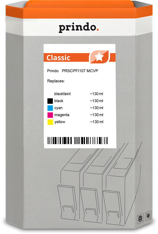Prindo Classic multipack black / cyan / magenta / yellow / Black (matt) (PRSCPFI107 MCVP) multipack black / cyan / magenta / yellow / Black (matt) kr2,785.52-43%kr1,578.67VAT incl., free shipping directly from stock Delivery time 1-2 days add to basket Content Prindo Classic Black (matt) 130ml Prindo Classic black 130ml Prindo Classic cyan 130ml Prindo Classic magenta 130ml Prindo Classic yellow 130ml Graduated pricesfrom 1 pcs.kr1,578.67VAT incl.from 2 pcs.kr1,499.75VAT incl.from 4 pcs.kr1,420.82VAT incl.from 6 pcs.kr1,341.88VAT incl. Product information "Prindo Classic multipack black / cyan / magenta / yellow / Black (matt) (PRSCPFI107 MCVP)"multipack black / cyan / magenta / yellow / Black (matt) Prindo Promise: Top quality for a fair price, that is what our exclusive private label product line stand for Remanufactured original toners and cartridges, working parts changes and only highest quality of colors and materials Only selected partners and suppliers 5 years guarantee on Prindo products – no loss of warranty for your printer Read moreread lessSuitable for the following printersCanon imagePROGRAF (iPF)iPF 670iPF 680iPF 685iPF 770iPF 780iPF 785technical dataWeight & dimensionsWeight1023 kgHeight60 mmDepth230 mmWidth130 mmFeaturesCartridge return & recyclingYesSizeStandardYesBrand compatibilityPrindoTechnical detailsMaster (outer) case GTIN (EAN/UPC)All details without engagement. Data source: IceCatManufacturer information on product safety (GPSR)Media-Concept Bürobedarf GmbH Inselkammerstrasse 582008 Unterhaching E-mail: mail@prindo.no Website: www.prindo.no Suitable accessories for your printer Original Canon PFI-107bk black ink cartridge (6705B001)colourTape Width Size colour: Filling quantity:130mlkr836.68VAT incl., free shipping directly from stock add to basket Delivery date unknown add to basket directly from stock add to basket directly from stock add to basket directly from stock add to basket directly from stock add to basket directly from stock add to basket directly from stock add to basket directly from stock add to basket directly from stock add to basket Price / performance winner compatible with Canon PFI-107bk black (6705B001) Prindo Classic black ink cartridgecolourTape Width Size colour: Filling quantity:130mlkr425.79VAT incl., free shipping directly from stock add to basket directly from stock add to basket directly from stock add to basket directly from stock add to basket directly from stock add to basket Original Canon Ink cartridge for your printer. Canon PFI-107bk black ink cartridge (6705B001)colourTape Width Size:Standard colour: Filling quantity:130mlkr836.68VAT incl., free shipping directly from stock add to basket Canon PFI-207bk black ink cartridge (8789B001)colourTape Width Size:XL colour: Filling quantity:300mlkr1,705.01VAT incl., free shipping Delivery date unknown add to basket Canon PFI-107mbk Black (matt) ink cartridge (6704B001)colourTape Width Size:Standard colour: Filling quantity:130mlkr836.68VAT incl., free shipping directly from stock add to basket Canon PFI-207mbk Black (matt) ink cartridge (8788B001)colourTape Width Size:XL colour: Filling quantity:300mlkr1,894.40VAT incl., free shipping directly from stock add to basket Canon PFI-107c cyan ink cartridge (6706B001)colourTape Width Size:Standard colour: Filling quantity:130mlkr836.68VAT incl., free shipping directly from stock add to basket Canon PFI-207c cyan ink cartridge (8790B001)colourTape Width Size:XL colour: Filling quantity:300mlkr1,894.40VAT incl., free shipping directly from stock add to basket Canon PFI-107m magenta ink cartridge (6707B001)colourTape Width Size:Standard colour: Filling quantity:130mlkr836.68VAT incl., free shipping directly from stock add to basket Canon PFI-207m magenta ink cartridge (8791B001)colourTape Width Size:XL colour: Filling quantity:300mlkr1,894.40VAT incl., free shipping directly from stock add to basket Canon PFI-107y yellow ink cartridge (6708B001)colourTape Width Size:Standard colour: Filling quantity:130mlkr836.68VAT incl., free shipping directly from stock add to basket Canon PFI-207y yellow ink cartridge (8792B001)colourTape Width Size:XL colour: Filling quantity:300mlkr1,894.40VAT incl., free shipping directly from stock add to basket Our price / performance winners Compatible Prindo Classic Ink cartridge for your printer.✅ Level indicator ✅ More printing performance ✅ 5-year warranty ✅ No loss of warranty for your printer compatible with Canon PFI-107bk black (6705B001) Prindo Classic black ink cartridgecolourTape Width Size:Standard colour: Filling quantity:130mlkr425.79VAT incl., free shipping directly from stock add to basket compatible with Canon PFI-107mbk Black (matt) (6704B001) Prindo Classic Black (matt) ink cartridgecolourTape Width Size:Standard colour: Filling quantity:130mlkr599.47VAT incl., free shipping directly from stock add to basket compatible with Canon PFI-107c cyan (6706B001) Prindo Classic cyan ink cartridgecolourTape Width Size:Standard colour: Filling quantity:130mlkr580.16VAT incl., free shipping directly from stock add to basket compatible with Canon PFI-107m magenta (6707B001) Prindo Classic magenta ink cartridgecolourTape Width Size:Standard colour: Filling quantity:130mlkr590.05VAT incl., free shipping directly from stock add to basket compatible with Canon PFI-107y yellow (6708B001) Prindo Classic yellow ink cartridgecolourTape Width Size:Standard colour: Filling quantity:130mlkr590.05VAT incl., free shipping directly from stock add to basket Your product is right in your shopping cart! Select your printer to make sure the selected product fits for you.Loading...