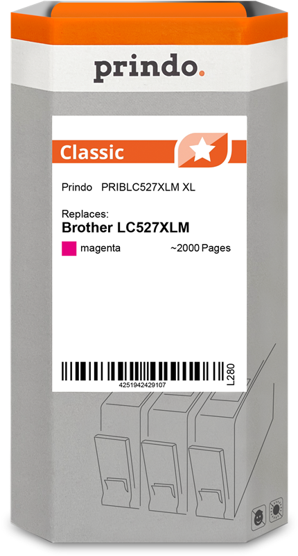 compatible with Brother LC527XLM magenta Prindo Classic XL magenta ink cartridge (PRIBLC527XLM) ink cartridge magenta ~2,000 pages kr256.64VAT incl., free shipping directly from stock Delivery time 1-2 days add to basket Prindo Classic XL black ~3,000 pages12.9 p / page kr386.81 Prindo Classic XL cyan ~2,000 pages12.1 p / page kr241.74 Prindo Classic XL magenta ~2,000 pages12.8 p / page kr256.64 Prindo Classic XL yellow ~2,000 pages12.1 p / page kr241.74 Graduated pricesfrom 1 pcs.kr256.64VAT incl.from 2 pcs.kr243.77VAT incl.from 4 pcs.kr230.94VAT incl.from 6 pcs.kr218.11VAT incl. Product information "Prindo Classic XL magenta ink cartridge PRIBLC527XLM"ink cartridge magenta ~2,000 pages Prindo Promise: Top quality for a fair price, that is what our exclusive private label product line stand for Remanufactured original toners and cartridges, working parts changes and only highest quality of colors and materials Only selected partners and suppliers 5 years guarantee on Prindo products – no loss of warranty for your printer Read moreread lessSuitable for the following printersBrother MFC-JMFC-J4350DWMFC-J4550DWManufacturer information on product safety (GPSR)Media-Concept Bürobedarf GmbH Inselkammerstrasse 582008 Unterhaching E-mail: mail@prindo.no Website: www.prindo.no Suitable accessories for your printer Original Brother LC527BK black ink cartridgecolourTape Width Size colour: Page number:~1,300 pagesPage price:32.8 p / pagekr426.25VAT incl., free shipping directly from stock add to basket directly from stock add to basket directly from stock add to basket directly from stock add to basket directly from stock add to basket directly from stock add to basket directly from stock add to basket directly from stock add to basket directly from stock add to basket directly from stock add to basket Price / performance winner compatible with Brother LC527BK black Prindo Classic black ink cartridgecolourTape Width Size colour: Page number:~1,300 pagesPage price:18.2 p / pagekr236.04VAT incl., free shipping directly from stock add to basket Delivery date unknown add to basket Delivery date unknown add to basket directly from stock add to basket directly from stock add to basket directly from stock add to basket Original Brother Ink cartridge for your printer. Brother LC527BK black ink cartridgecolourTape Width Size:Standard colour: Page number:~1,300 pagesPage price:32.8 p / pagekr426.25VAT incl., free shipping directly from stock add to basket Brother LC527XLBK black ink cartridgecolourTape Width Size:XL colour: Page number:~3,000 pagesPage price:21.0 p / pagekr631.47VAT incl., free shipping directly from stock add to basket Brother LC527C cyan ink cartridgecolourTape Width Size:Standard colour: Page number:~900 pagesPage price:27.4 p / pagekr246.28VAT incl., free shipping directly from stock add to basket Brother LC527XLC cyan ink cartridgecolourTape Width Size:XL colour: Page number:~2,000 pagesPage price:19.7 p / pagekr394.72VAT incl., free shipping directly from stock add to basket Brother LC527M magenta ink cartridgecolourTape Width Size:Standard colour: Page number:~900 pagesPage price:27.4 p / pagekr246.28VAT incl., free shipping directly from stock add to basket Brother LC527XLM magenta ink cartridgecolourTape Width Size:XL colour: Page number:~2,000 pagesPage price:19.7 p / pagekr394.72VAT incl., free shipping directly from stock add to basket Brother LC527Y yellow ink cartridgecolourTape Width Size:Standard colour: Page number:~900 pagesPage price:27.4 p / pagekr246.28VAT incl., free shipping directly from stock add to basket Brother LC527XLY yellow ink cartridgecolourTape Width Size:XL colour: Page number:~2,000 pagesPage price:19.7 p / pagekr394.72VAT incl., free shipping directly from stock add to basket Brother LC527VAL multipack black / cyan / magenta / yellow (LC527VAL)colourTape Width Size:Standard colour: Page number:~4,000 pagesPage price:24.0 p / pagekr1,165.09-17%kr961.28VAT incl., free shipping directly from stock add to basket Brother LC527XLVAL multipack black / cyan / magenta / yellow (LC527XLVAL)colourTape Width Size:XL colour: Page number:~9,000 pagesPage price:18.2 p / pagekr1,815.63-10%kr1,641.84VAT incl., free shipping directly from stock add to basket Our price / performance winners Compatible Prindo Classic Ink cartridge for your printer.✅ Level indicator ✅ More printing performance ✅ 5-year warranty ✅ No loss of warranty for your printer compatible with Brother LC527BK black Prindo Classic black ink cartridgecolourTape Width Size:Standard colour: Page number:~1,300 pagesPage price:18.2 p / pagekr236.04VAT incl., free shipping directly from stock add to basket compatible with Brother LC527C cyan Prindo Classic cyan ink cartridgecolourTape Width Size:Standard colour: Page number:~900 pagesPage price:16.8 p / pagekr150.77VAT incl., free shipping directly from stock add to basket compatible with Brother LC527M magenta Prindo Classic magenta ink cartridgecolourTape Width Size:Standard colour: Page number:~900 pagesPage price:16.8 p / pagekr150.77VAT incl., free shipping directly from stock add to basket compatible with Brother LC527Y yellow Prindo Classic yellow ink cartridgecolourTape Width Size:Standard colour: Page number:~900 pagesPage price:16.8 p / pagekr150.77VAT incl., free shipping directly from stock add to basket compatible with Brother LC527VAL Prindo Classic multipack black / cyan / magenta / yellowcolourTape Width Size:Standard colour: Page number:~4,000 pagesPage price:14.8 p / pagekr688.35-14%kr590.05VAT incl., free shipping Delivery date unknown add to basket compatible with Brother LC527XLVAL Prindo Classic XL multipack black / cyan / magenta / yellowcolourTape Width Size:XL colour: Page number:~9,000 pagesPage price:11.2 p / pagekr1,126.93-11%kr1,005.72VAT incl., free shipping Delivery date unknown add to basket Your product is right in your shopping cart! Select your printer to make sure the selected product fits for you.Loading...