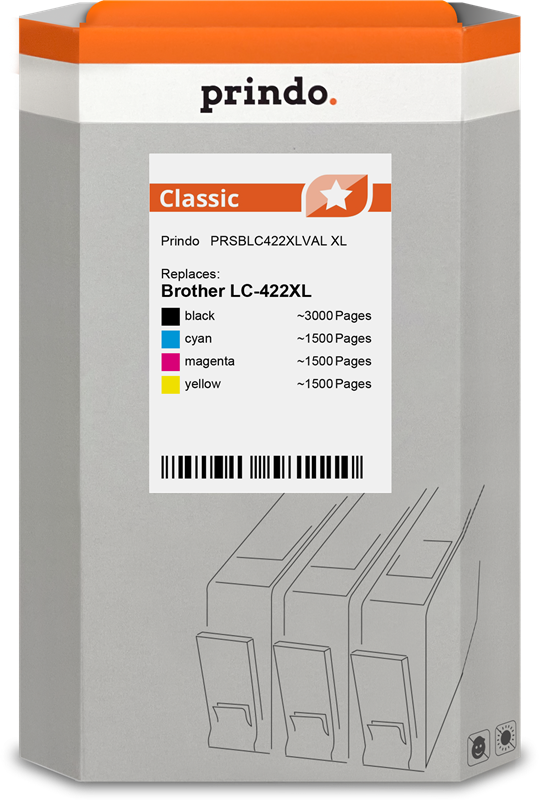 compatible with Brother LC-422XL Prindo Classic XL multipack black / cyan / magenta / yellow (PRSBLC422XLVAL) multipack black / cyan / magenta / yellow ~7,500 pages kr861.23-27%kr631.47VAT incl., free shipping directly from stock Delivery time 1-2 days add to basket Content Prindo Classic XL black ~3.000 pages 6.9 p / page Prindo Classic XL cyan ~1.500 pages 9.4 p / page Prindo Classic XL magenta ~1.500 pages 9.6 p / page Prindo Classic XL yellow ~1.500 pages 9.4 p / page Graduated pricesfrom 1 pcs.kr631.47VAT incl.from 2 pcs.kr599.90VAT incl.from 4 pcs.kr568.33VAT incl.from 6 pcs.kr536.76VAT incl. Product information "Prindo Classic XL multipack black / cyan / magenta / yellow (PRSBLC422XLVAL)"multipack black / cyan / magenta / yellow ~7,500 pages Prindo Promise: Top quality for a fair price, that is what our exclusive private label product line stand for Remanufactured original toners and cartridges, working parts changes and only highest quality of colors and materials Only selected partners and suppliers 5 years guarantee on Prindo products – no loss of warranty for your printer Read moreread lessSuitable for the following printersBrother MFC-JMFC-J5340DWMFC-J5340DWEMFC-J5345DWMFC-J5740DWMFC-J6540DWMFC-J6540DWEMFC-J6940DWtechnical dataWeight & dimensionsWeight320 kgHeight45 mmDepth180 mmWidth90 mmFeaturesSizeXLYesYesBrand compatibilityPrindoTechnical detailsMaster (outer) case GTIN (EAN/UPC)Other featuresPage yield7500 pagesAll details without engagement. Data source: IceCatManufacturer information on product safety (GPSR)Media-Concept Bürobedarf GmbH Inselkammerstrasse 582008 Unterhaching E-mail: mail@prindo.no Website: www.prindo.no Suitable accessories for your printer Original Brother LC422BK black ink cartridgecolourTape Width Size colour: Page number:~550 pagesPage price:45.6 p / pagekr250.70VAT incl., free shipping directly from stock add to basket directly from stock add to basket directly from stock add to basket directly from stock add to basket directly from stock add to basket directly from stock add to basket directly from stock add to basket directly from stock add to basket directly from stock add to basket directly from stock add to basket Price / performance winner compatible with Brother LC422BK black Prindo Classic black ink cartridgecolourTape Width Size colour: Page number:~550 pagesPage price:26.8 p / pagekr147.51VAT incl., free shipping directly from stock add to basket directly from stock add to basket directly from stock add to basket directly from stock add to basket directly from stock add to basket directly from stock add to basket directly from stock add to basket directly from stock add to basket directly from stock add to basket directly from stock add to basket Original Brother multipack for your printer. Brother LC422BK black ink cartridgecolourTape Width Size:Standard colour: Page number:~550 pagesPage price:45.6 p / pagekr250.70VAT incl., free shipping directly from stock add to basket Brother LC422XLBK black ink cartridgecolourTape Width Size:XL colour: Page number:~3,000 pagesPage price:15.8 p / pagekr472.90VAT incl., free shipping directly from stock add to basket Brother LC422C cyan ink cartridgecolourTape Width Size:Standard colour: Page number:~550 pagesPage price:32.7 p / pagekr179.97VAT incl., free shipping directly from stock add to basket Brother LC422XLC cyan ink cartridgecolourTape Width Size:XL colour: Page number:~1,500 pagesPage price:21.7 p / pagekr325.39VAT incl., free shipping directly from stock add to basket Brother LC422M magenta ink cartridgecolourTape Width Size:Standard colour: Page number:~550 pagesPage price:32.7 p / pagekr179.97VAT incl., free shipping directly from stock add to basket Brother LC422XLM magenta ink cartridgecolourTape Width Size:XL colour: Page number:~1,500 pagesPage price:21.7 p / pagekr325.39VAT incl., free shipping directly from stock add to basket Brother LC422Y yellow ink cartridgecolourTape Width Size:Standard colour: Page number:~550 pagesPage price:32.3 p / pagekr177.64VAT incl., free shipping directly from stock add to basket Brother LC422XLY yellow ink cartridgecolourTape Width Size:XL colour: Page number:~1,500 pagesPage price:21.7 p / pagekr325.39VAT incl., free shipping directly from stock add to basket Brother LC-422 multipack black / cyan / magenta / yellow (LC422VAL)colourTape Width Size:Standard colour: Page number:~2,200 pagesPage price:34.8 p / pagekr764.90VAT incl., free shipping directly from stock add to basket Brother LC-422XL multipack black / cyan / magenta / yellow (LC422XLVAL)colourTape Width Size:XL colour: Page number:~7,500 pagesPage price:18.7 p / pagekr1,401.02VAT incl., free shipping directly from stock add to basket Our price / performance winners Compatible Prindo Classic Ink cartridge for your printer.✅ Level indicator ✅ More printing performance ✅ 5-year warranty ✅ No loss of warranty for your printer compatible with Brother LC422BK black Prindo Classic black ink cartridgecolourTape Width Size:Standard colour: Page number:~550 pagesPage price:26.8 p / pagekr147.51VAT incl., free shipping directly from stock add to basket compatible with Brother LC422XLBK black Prindo Classic XL black ink cartridgecolourTape Width Size:XL colour: Page number:~3,000 pagesPage price:9.4 p / pagekr281.07VAT incl., free shipping directly from stock add to basket Prindo Classic black / cyan / magenta / yellow value packcolourTape Width Size:XL colour: Page number:~7,500 pagesPage price:11.5 p / pagekr861.11VAT incl., free shipping directly from stock add to basket compatible with Brother LC422C cyan Prindo Classic cyan ink cartridgecolourTape Width Size:Standard colour: Page number:~550 pagesPage price:19.4 p / pagekr106.45VAT incl., free shipping directly from stock add to basket compatible with Brother LC422XLC cyan Prindo Classic XL cyan ink cartridgecolourTape Width Size:XL colour: Page number:~1,500 pagesPage price:12.8 p / pagekr192.30VAT incl., free shipping directly from st