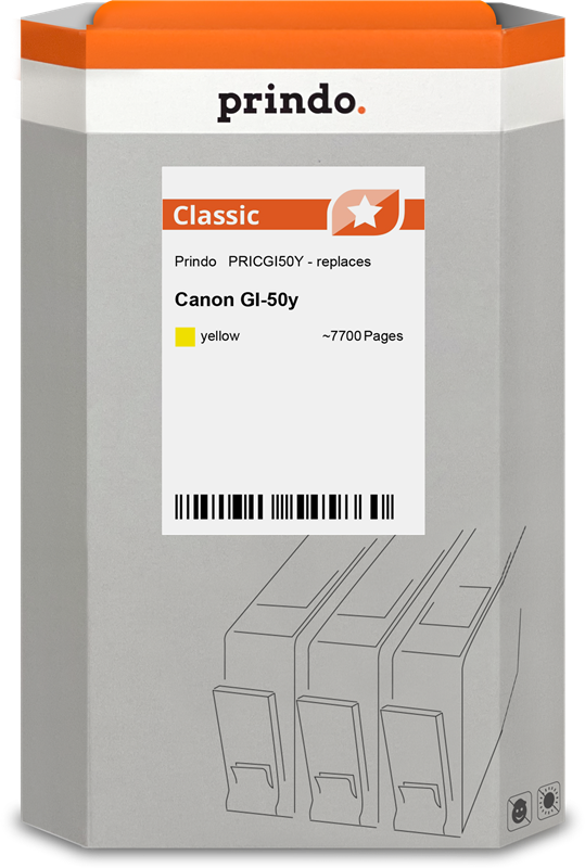 compatible with Canon GI-50y yellow (3405C001) Prindo Classic yellow ink cartridge (PRICGI50Y) ink cartridge yellow ~7,700 pages kr66.78VAT incl., plus shipping costskr954.00/ l directly from stock Delivery time 1-2 days add to basket Prindo Classic black ~6,000 pages1.5 p / page kr87.95kr517.35/ l Prindo Classic cyan ~7,700 pages0.8 p / page kr62.82kr897.43/ l Prindo Classic magenta ~7,700 pages0.9 p / page kr67.13kr959.00/ l Prindo Classic yellow ~7,700 pages0.9 p / page kr66.78kr954.00/ l Graduated pricesfrom 1 pcs.kr66.78VAT incl.from 2 pcs.kr63.45VAT incl.from 4 pcs.kr60.11VAT incl.from 6 pcs.kr56.77VAT incl. Product information "Prindo Classic yellow ink cartridge PRICGI50Y"ink cartridge yellow ~7,700 pages Prindo Promise: Top quality for a fair price, that is what our exclusive private label product line stand for Remanufactured original toners and cartridges, working parts changes and only highest quality of colors and materials Only selected partners and suppliers 5 years guarantee on Prindo products – no loss of warranty for your printer Read moreread lessSuitable for the following printersCanon PIXMA GPixma G5050Pixma G6050Pixma G7050technical dataTechnical detailsMaster (outer) case GTIN (EAN/UPC)FeaturesSizeStandardYes70YesPrint technologyInkjet printingPage yield7700 pagesCartridge return & recyclingYesBrand compatibilityPrindoWeight & dimensionsWeight250 kgHeight40 mmDepth150 mmWidth50 mmAll details without engagement. Data source: IceCatManufacturer information on product safety (GPSR)Media-Concept Bürobedarf GmbH Inselkammerstrasse 582008 Unterhaching E-mail: mail@prindo.no Website: www.prindo.no Suitable accessories for your printer Original Canon GI-50pgbk black ink cartridge (3386C001)colourTape Width Size colour: Page number:~6,000 pagesPage price:2.4 p / pagekr143.67VAT incl., free shippingkr845.12/ l directly from stock add to basket directly from stock add to basket directly from stock add to basket directly from stock add to basket Original Canon Ink cartridge for your printer. Canon GI-50pgbk black ink cartridge (3386C001)colourTape Width Size:Standard colour: Page number:~6,000 pagesPage price:2.4 p / pagekr143.67VAT incl., free shippingkr845.12/ l directly from stock add to basket Canon GI-50c cyan ink cartridge (3403C001)colourTape Width Size:Standard colour: Page number:~7,700 pagesPage price:1.3 p / pagekr102.61VAT incl., free shippingkr1,465.86/ l directly from stock add to basket Canon GI-50m magenta ink cartridge (3404C001)colourTape Width Size:Standard colour: Page number:~7,700 pagesPage price:1.4 p / pagekr109.47VAT incl., free shippingkr1,563.86/ l directly from stock add to basket Canon GI-50y yellow ink cartridge (3405C001)colourTape Width Size:Standard colour: Page number:~7,700 pagesPage price:1.4 p / pagekr108.89VAT incl., free shippingkr1,555.57/ l directly from stock add to basket Your product is right in your shopping cart! Select your printer to make sure the selected product fits for you.Loading...
