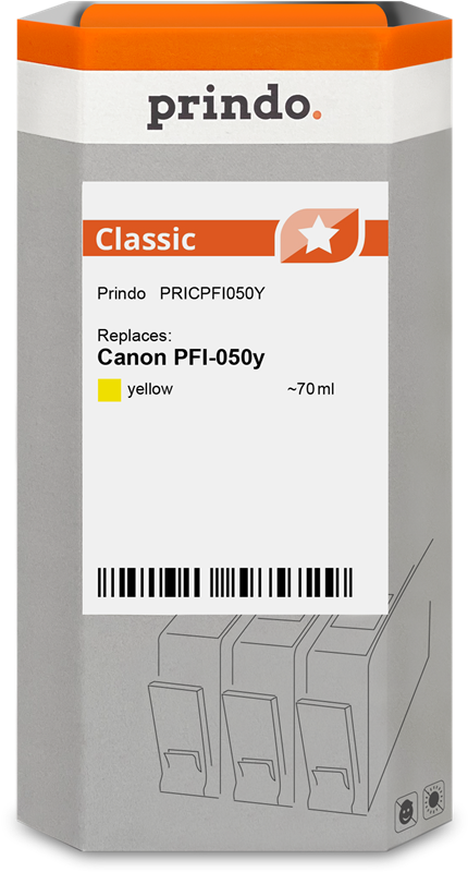 compatible with Canon PFI-050y yellow (5701C001) Prindo Classic yellow ink cartridge (PRICPFI050Y) ink cartridge yellow 70ml kr502.80VAT incl., free shipping Delivery date unknown add to basket Prindo Classic black 70ml kr499.66 Prindo Classic cyan 70ml kr454.52 Prindo Classic magenta 70ml kr464.06 Prindo Classic yellow 70ml kr502.80 Product information "Prindo Classic yellow ink cartridge PRICPFI050Y"ink cartridge yellow 70ml Prindo Promise: Top quality for a fair price, that is what our exclusive private label product line stand for Remanufactured original toners and cartridges, working parts changes and only highest quality of colors and materials Only selected partners and suppliers 5 years guarantee on Prindo products – no loss of warranty for your printer Read moreread lessSuitable for the following printersCanon imagePROGRAF (iPF)imagePROGRAF TC-20imagePROGRAF TC-21imagePROGRAF TC-21Mtechnical dataTechnical detailsMaster (outer) case GTIN (EAN/UPC)FeaturesSizeStandardYes70YesPrint technologyInkjet printingCartridge return & recyclingYesBrand compatibilityPrindoWeight & dimensionsWeight200 kgHeight56 mmDepth152 mmWidth40 mmAll details without engagement. Data source: IceCatManufacturer information on product safety (GPSR)Media-Concept Bürobedarf GmbH Inselkammerstrasse 582008 Unterhaching E-mail: mail@prindo.no Website: www.prindo.no Suitable accessories for your printer Original Canon PFI-050bk black ink cartridge (5698C001)colourTape Width Size colour: Filling quantity:70mlkr815.51VAT incl., free shipping directly from stock add to basket directly from stock add to basket directly from stock add to basket directly from stock add to basket Original Canon Ink cartridge for your printer. Canon PFI-050bk black ink cartridge (5698C001)colourTape Width Size:Standard colour: Filling quantity:70mlkr815.51VAT incl., free shipping directly from stock add to basket Canon PFI-050c cyan ink cartridge (5699C001)colourTape Width Size:Standard colour: Filling quantity:70mlkr741.98VAT incl., free shipping directly from stock add to basket Canon PFI-050m magenta ink cartridge (5700C001)colourTape Width Size:Standard colour: Filling quantity:70mlkr757.81VAT incl., free shipping directly from stock add to basket Canon PFI-050y yellow ink cartridge (5701C001)colourTape Width Size:Standard colour: Filling quantity:70mlkr820.98VAT incl., free shipping directly from stock add to basket Your product is right in your shopping cart! Select your printer to make sure the selected product fits for you.Loading...