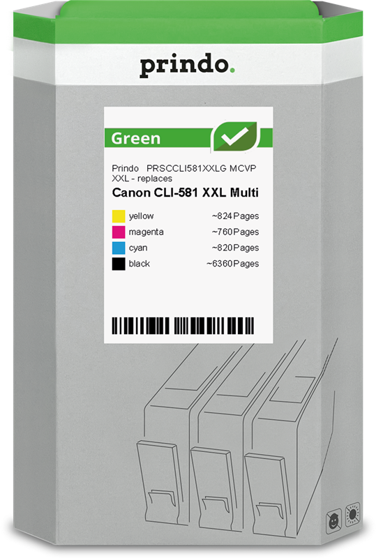 Prindo Green XXL multipack black / cyan / magenta / yellow (PRSCCLI581XXLG MCVP) (2)5.0/5.0 multipack black / cyan / magenta / yellow ~8,764 pages kr681.85-36%kr434.16VAT incl., free shipping directly from stock Delivery time 1-2 days add to basket Content Prindo Green XXL black ~4.590 pages 2.3 p / page Prindo Green XXL cyan ~820 pages 13.2 p / page Prindo Green XXL magenta ~760 pages 14.2 p / page Prindo Green XXL yellow ~824 pages 13.3 p / page Graduated pricesfrom 1 pcs.kr434.16VAT incl.from 2 pcs.kr412.43VAT incl.from 4 pcs.kr390.72VAT incl.from 6 pcs.kr369.02VAT incl. Product information "Prindo Green XXL multipack black / cyan / magenta / yellow (PRSCCLI581XXLG MCVP)"multipack black / cyan / magenta / yellow ~8,764 pages Prindo Promise: Top quality for a fair price, that is what our exclusive private label product line stand for Remanufactured original toners and cartridges, working parts changes and only highest quality of colors and materials Only selected partners and suppliers 5 years guarantee on Prindo products – no loss of warranty for your printer Read moreread lessSuitable for the following printersCanon PIXMA TRPIXMA TR7550PIXMA TR8550TR7650Canon PIXMA TSPIXMA TS6150PIXMA TS6151PIXMA TS6250PIXMA TS6251PIXMA TS6350PIXMA TS6350aPIXMA TS6351PIXMA TS6351aPIXMA TS705PIXMA TS8150PIXMA TS8151PIXMA TS8152PIXMA TS8250PIXMA TS8251PIXMA TS8252PIXMA TS8350PIXMA TS8351PIXMA TS8352PIXMA TS9150PIXMA TS9155PIXMA TS9550PIXMA TS9550aPIXMA TS9551CPIXMA TS9551Catechnical dataWeight & dimensionsWeight130 kgHeight45 mmDepth180 mmWidth90 mmFeaturesSizeXXLYesYesBrand compatibilityPrindoTechnical detailsMaster (outer) case GTIN (EAN/UPC)All details without engagement. Data source: IceCatManufacturer information on product safety (GPSR)Media-Concept Bürobedarf GmbH Inselkammerstrasse 582008 Unterhaching E-mail: mail@prindo.no Website: www.prindo.no customer ratings10/20/2025, Thilo O. Translated from German:AAA9/18/2025, Tuana B. Translated from German:Good quality, fast delivery. Suitable accessories for your printer Original Canon CLI-581bk black ink cartridge (2106C001)colourTape Width Size colour: Page number:~750 pagesPage price:18.5 p / pagekr138.90VAT incl., free shipping directly from stock add to basket directly from stock add to basket directly from stock add to basket directly from stock add to basket directly from stock add to basket directly from stock add to basket directly from stock add to basket directly from stock add to basket directly from stock add to basket directly from stock add to basket directly from stock add to basket directly from stock add to basket directly from stock add to basket directly from stock add to basket directly from stock add to basket directly from stock add to basket directly from stock add to basket directly from stock add to basket Top seller compatible with Canon CLI-581bk XXL black (1998C001) Prindo Green XXL black ink cartridgecolourTape Width Size colour: Page number:~4,590 pagesPage price:3.7 p / pagekr169.27VAT incl., free shipping directly from stock add to basket directly from stock add to basket directly from stock add to basket directly from stock add to basket directly from stock add to basket directly from stock add to basket Price / performance winner compatible with Canon CLI-581bk XL black (2052C001) Prindo Classic XL black ink cartridgecolourTape Width Size colour: Page number:~2,280 pagesPage price:4.9 p / pagekr111.10VAT incl., free shipping directly from stock add to basket directly from stock add to basket directly from stock add to basket directly from stock add to basket directly from stock add to basket directly from stock add to basket directly from stock add to basket directly from stock add to basket directly from stock add to basket directly from stock add to basket directly from stock add to basket directly from stock add to basket directly from stock add to basket directly from stock add to basket Original Canon multipack for your printer. Canon CLI-581bk black ink cartridge (2106C001)colourTape Width Size:Standard colour: Page number:~750 pagesPage price:18.5 p / pagekr138.90VAT incl., free shipping directly from stock add to basket Canon PGI-580pgbk black ink cartridge (2078C001)colourTape Width Size:Standard colour: Page number:~200 pagesPage price:74.7 p / pagekr149.37VAT incl., free shipping directly from stock add to basket Canon CLI-581bk XL black ink cartridge (2052C001)colourTape Width Size:XL colour: Page number:~2,280 pagesPage price:8.0 p / pagekr181.60VAT incl., free shipping directly from stock add to basket Canon PGI-580pgbk XL black ink cartridge (2024C001)colourTape Width Size:XL colour: Page number:~400 pagesPage price:51.1 p / pagekr204.28VAT incl., free shipping directly from stock add to basket Canon CLI-581bk XXL black ink cartridge (1998C001)colourTape Width Size:XXL colour: Page number:~4,590 pagesPage price:5.6 p / pagekr257.33VAT incl., free shipping directly from stock add to basket Canon PGI-580pgbk XXL black ink cartridge (1970C001)colourTape Width Size:XXL colour: Page number:~600 pagesPage price:44.7 p / pagekr268.27VAT incl., free shipping directly from stock add to basket Canon CLI-581c cyan ink cartridge (2103C001)colourTape Width Size:Standard colour: Page number:~259 pagesPage price:53.6 p / pagekr138.90VAT incl., free shipping directly from stock add to basket Canon CLI-581c XL cyan ink cartridge (2049C001)colourTape Width Size:XL colour: Page number:~515 pagesPage price:35.3 p / pagekr181.60VAT incl., free shipping directly from stock add to basket Canon CLI-581c XXL cyan ink cartridge (1995C001)colourTape Width Size:XXL colour: Page number:~920 pagesPage price:28.0 p / pagekr257.57VAT incl., free shipping directly from stock add to basket Canon CLI-581m magenta ink cartridge (2104C001)colourTape Width Size:Standard colour: Page number:~237 pagesPage price:59.4 p / pagekr140.88VAT incl., free shipping directly from stock add to basket Canon CLI-581m XL magenta ink cartridge (2050C